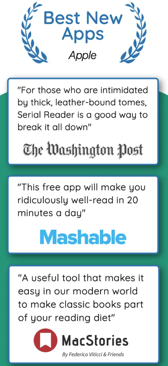 Zatímco někdo díla klasické zahraniční literatury miluje, pro jiného může být trápením se jimi prokousat. Právě pro tyto případy je zde aplikace Serial Reader. Najdete zde více než devět stovek literárních děl, která jsou k dispozici zcela zdarma a ve zjednodušené verzi. Můžete si přizpůsobit vzhled uživatelského rozhraní, pořizovat poznámky, zvýrazňovat, vypisovat citáty a spoustu dalšího.