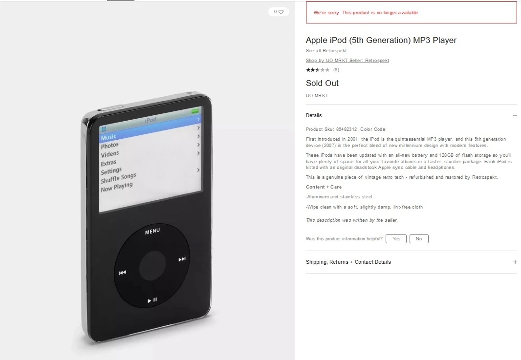 Není tomu dlouho, co iPod oslavil další výročí. Přístroj byl poprvé představen 23. října 2001 a do zóny vzpomínek Apple poslal poslední zařízení, iPod touch sedmé generace, v květnu loňského roku. S doprodáním zásob se tak uzavřela jedna kapitola kdysi klíčového produktu společnosti. Podle serveru FastCompany však prodejce historických technologií Retrospekt oživil iPod páté generace tím, že na webových stránkách Urban Outfitters nabízel „renovované a restaurované“ kusy.