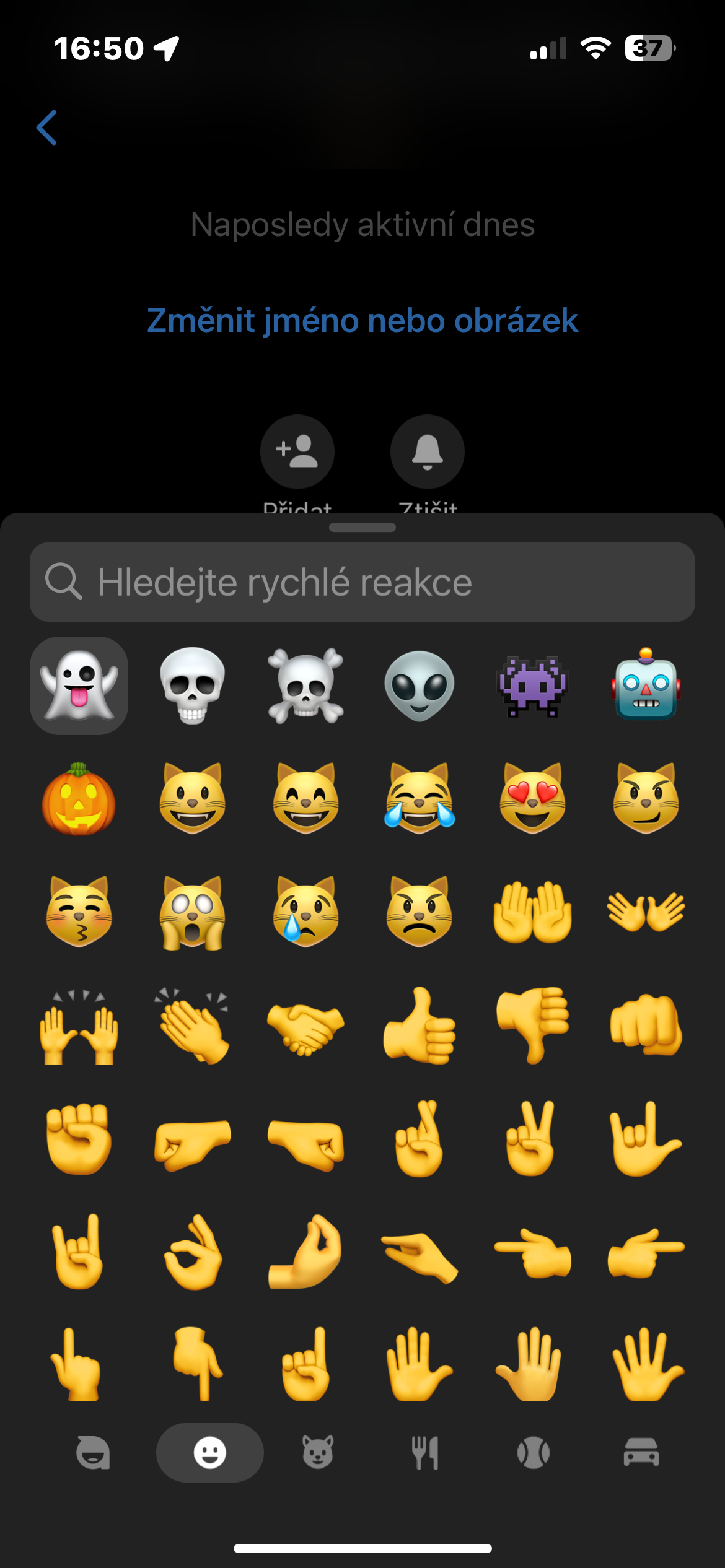 Pokud si v Messengeru často vyměňujete jeden a tentýž emotikon, můžete jej nastavit jako rychlou reakci, takže jej budete mít neustále po ruce. Otevřete příslušný chat, klepněte na název v horní části displeje a poté klepněte na Rychlá reakce.