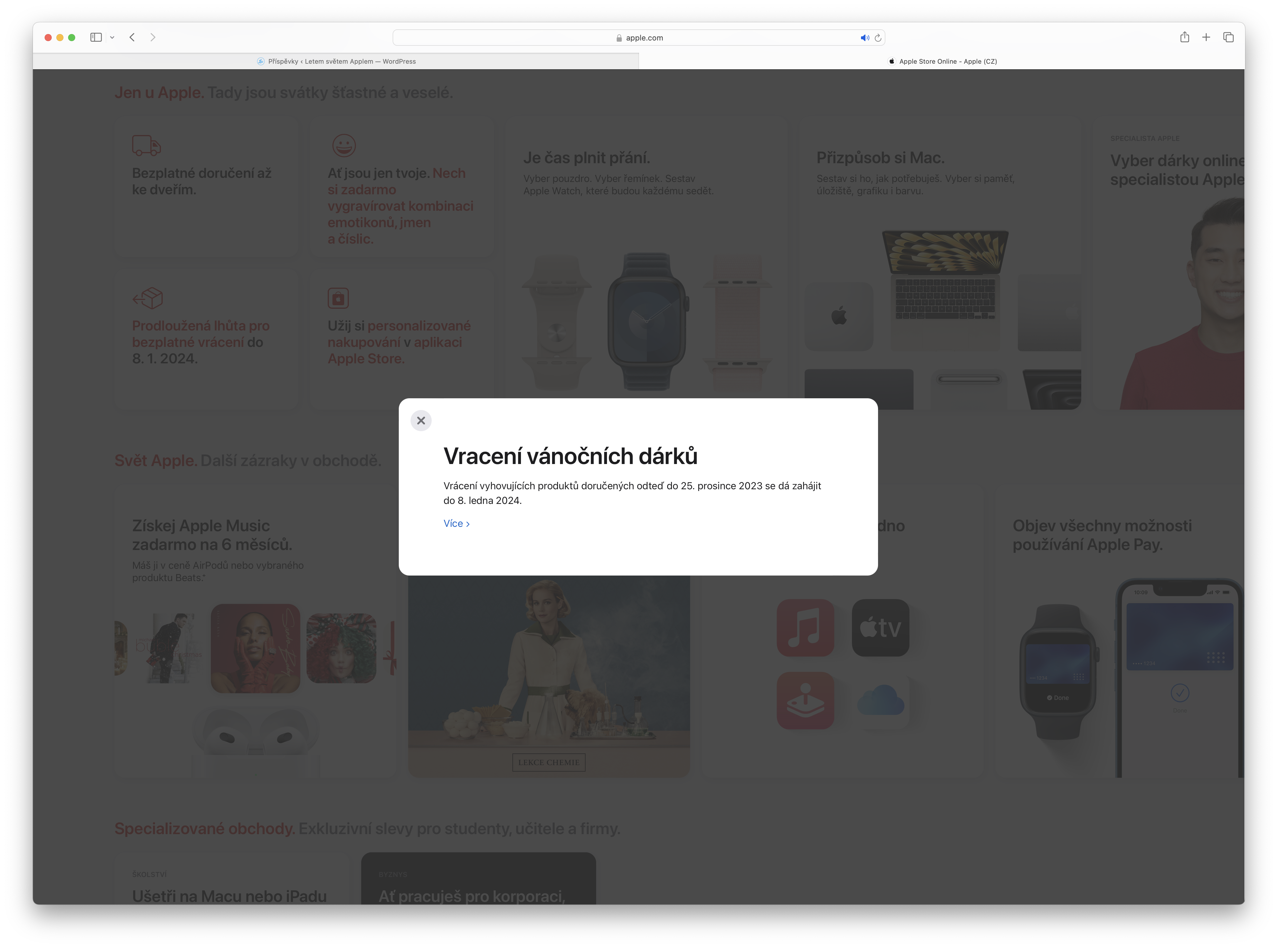 Na to letos však můžeme zapomenout. Jedinou „akci“, kterou Apple nabízí je možnost vrátit věci, které od dnešního dne nakoupít do 25. 12. zpět do obchodu a to až do 8. ledna 2024. Samozřejmě nechybí ani upoutávka na dopravu zdarma a bezplatné gravírování. Obojí však dostanete kdykoli během roku již několik let. Letošní Vánoce tak spíše nadělíme my Applu tržby, než abychom se dočkali alespoň nějaké drobnosti jako bonusu k nákupu.