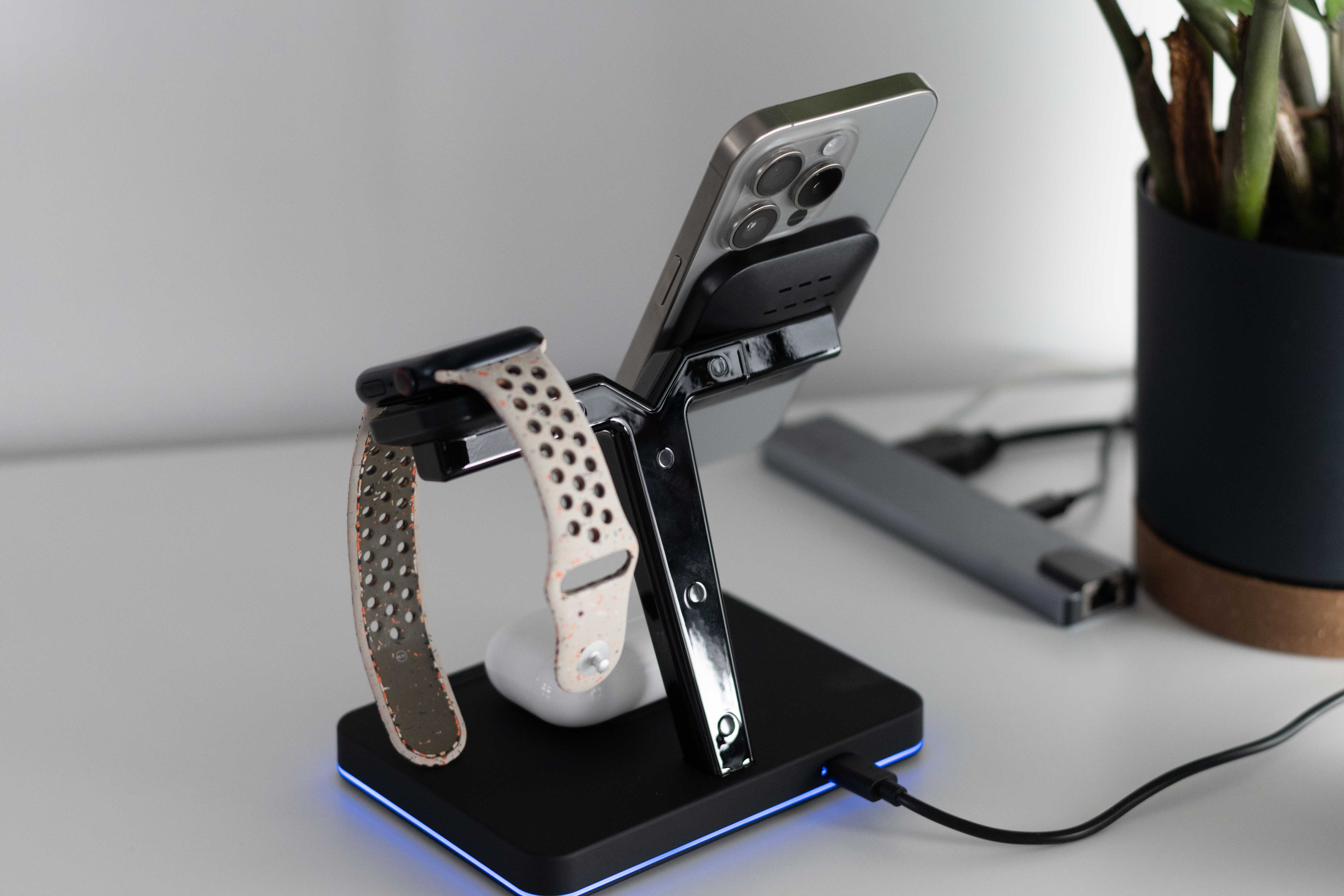 A jaká je nabíječka v praxi? Musím říci, že opravdu dobrá. Osobně mám trojité nabíjecí stojánky velmi rád, protože jsem si za poslední roky po zavedení MagSafe zvykl na pracovním stole odkládat telefon a AirPods právě na ně. Poslední dobou se pak snažím mimo noční stolek nabíjet i Apple Watch, abych si od elektroniky alespoň trochu odpočal. YAC 5320 tedy v uplynulých týdnech zaujala na mém pracovním stole velmi důležité místo. Co se týče nabíjení, to probíhá naprosto spolehlivě jak v případě iPhonu, tak i Apple Watch či AirPods. Za zmínku rovněž stojí, že základna nabíječky je schopna skutečně nabíjet nejen AirPods, ale třeba i iPhone, byť zde je třeba počítat s tím, že nabíjení bude logicky vzhledem k výstupu 3W probíhat pomalu. Jako „nouzovka“ ale je to za mě rozhodně fajn.