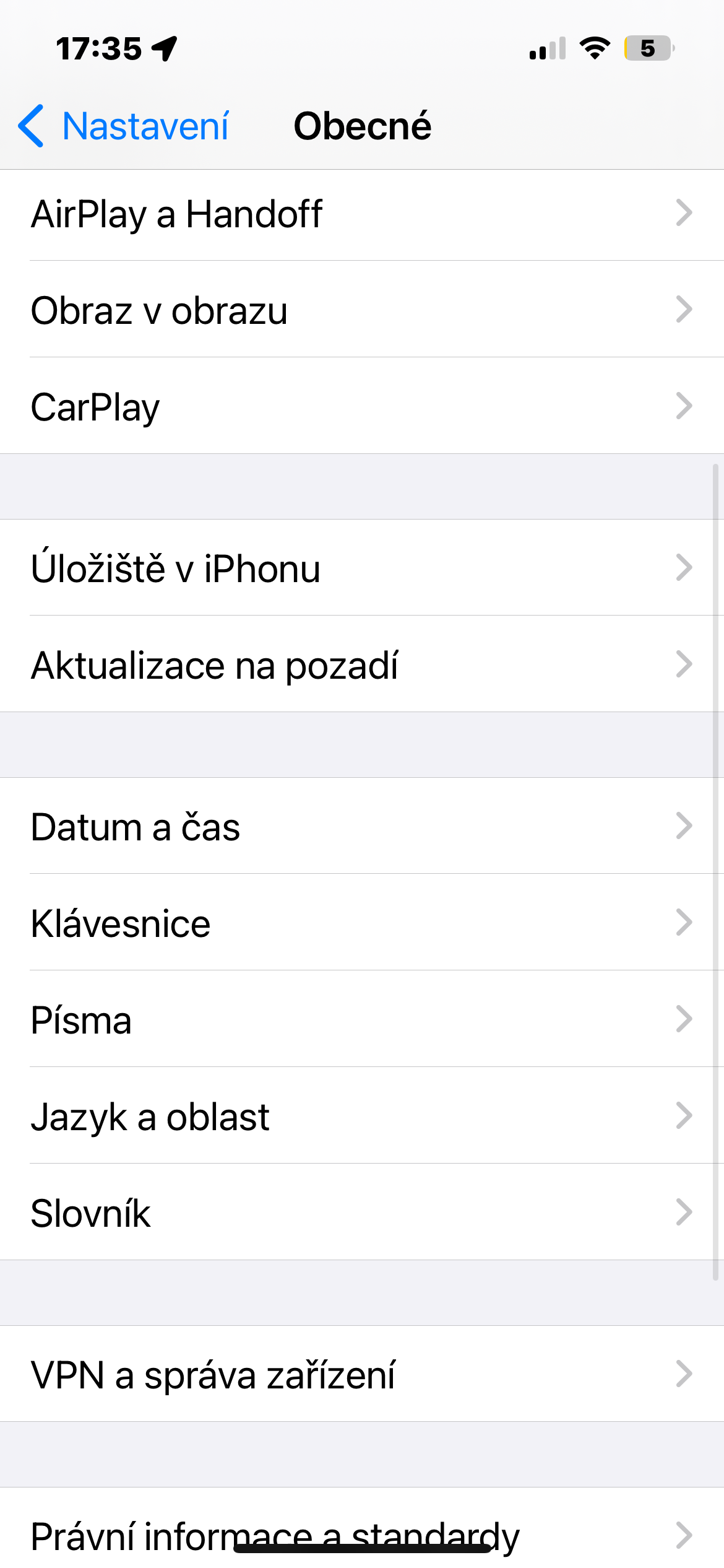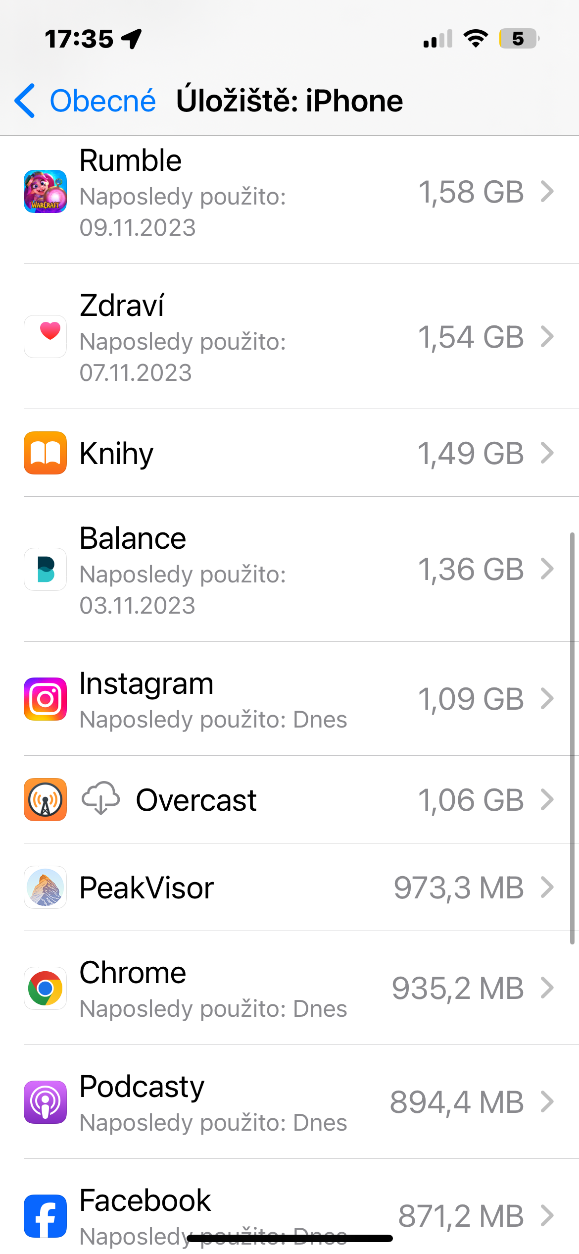 Kapacitu úložiště zjistíte tak, že na iPhonu spustíte Nastavení -> Obecné -> Úložiště v iPhonu.