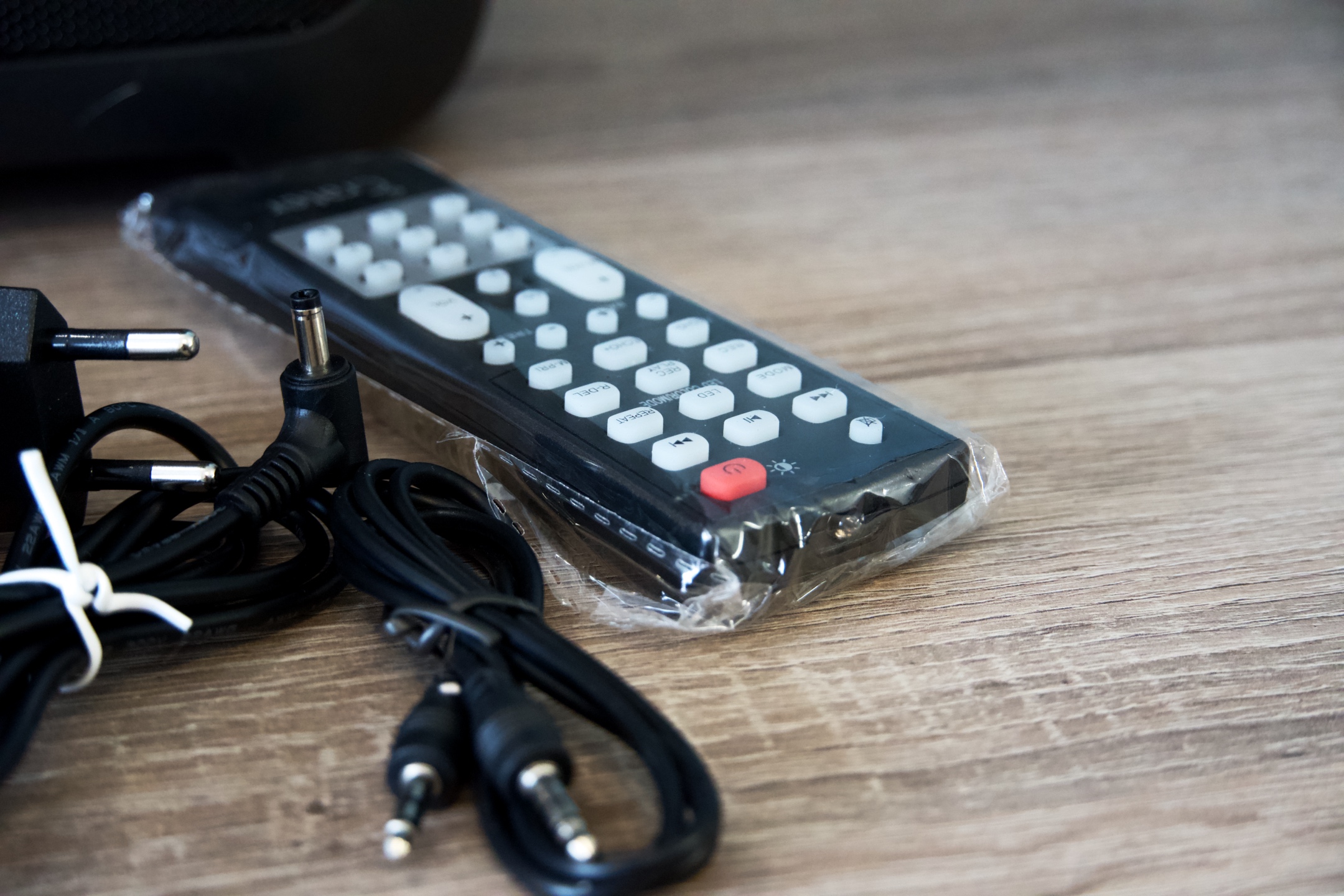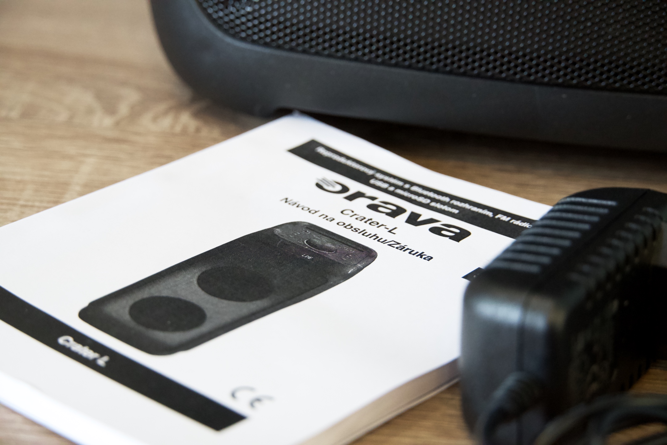 Crater L není úplný drobeček, čemuž odpovídá také balení. Při přepravě brání poškození shora i na spodní straně polystyrénová forma a po sejmutí ochranného igelitu už narazíte na samotný reprobox společně s dálkovým ovladačem, napájecím adaptérem, 3,5mm kabelem o délce 1 m a dobře strukturovaným manuálem v několika jazykových mutacích. K provozu dálkového ovládání je zapotřebí 2 baterií typu AAA.