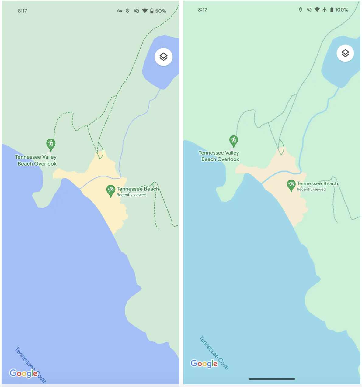 Není tomu tak dávno, co jsme vás na našem magazínu informovali o tom, že se Google chystá u svých Maps zavést jednu z nejvýraznějších změn za poslední roky ve formě nasazení nových odstínů pro spoustu prvků v nich. A jak Google slíbil, tak nyní i udělal. Po týdnech testování totiž začal novinku ve velkém rozšiřovat mezi uživatele po celém světě a to jak na mobilních telefonech či tabletech skrze svou aplikaci, tak i přes webovou verzi dostupnou na notoricky známé adrese maps.google.com. Na to, jak barvičky vypadají nyní a jak vypadaly dříve se můžete podívat v galerii níže. Na levém snímku je vždy k vidění dřívější verze, na pravém pak to, jak vypadá to stejné místo po barevném redesignu.