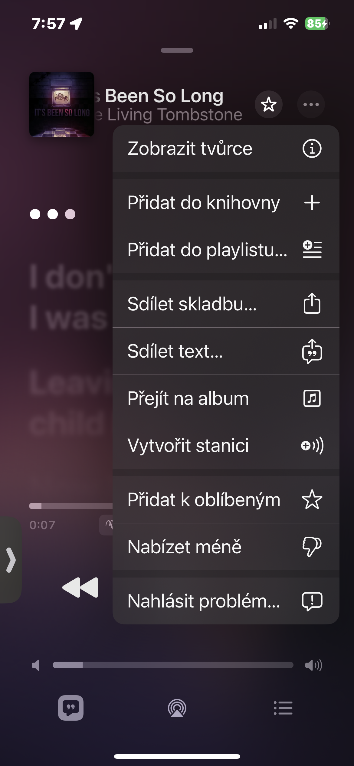 Ať už objevujete nový žánr, interpreta nebo styl, můžete Apple Music naučit, co se vám líbí a co ne. Pokud při přehrávání skladby klepnete na ikonku tří teček v kroužku v pravém horním rohu, můžete klepnutím na Přidat k oblíbeným nebo Nabízet méně ovlivnit, jak bude vypadat budoucí doporučení hudby k poslechu.