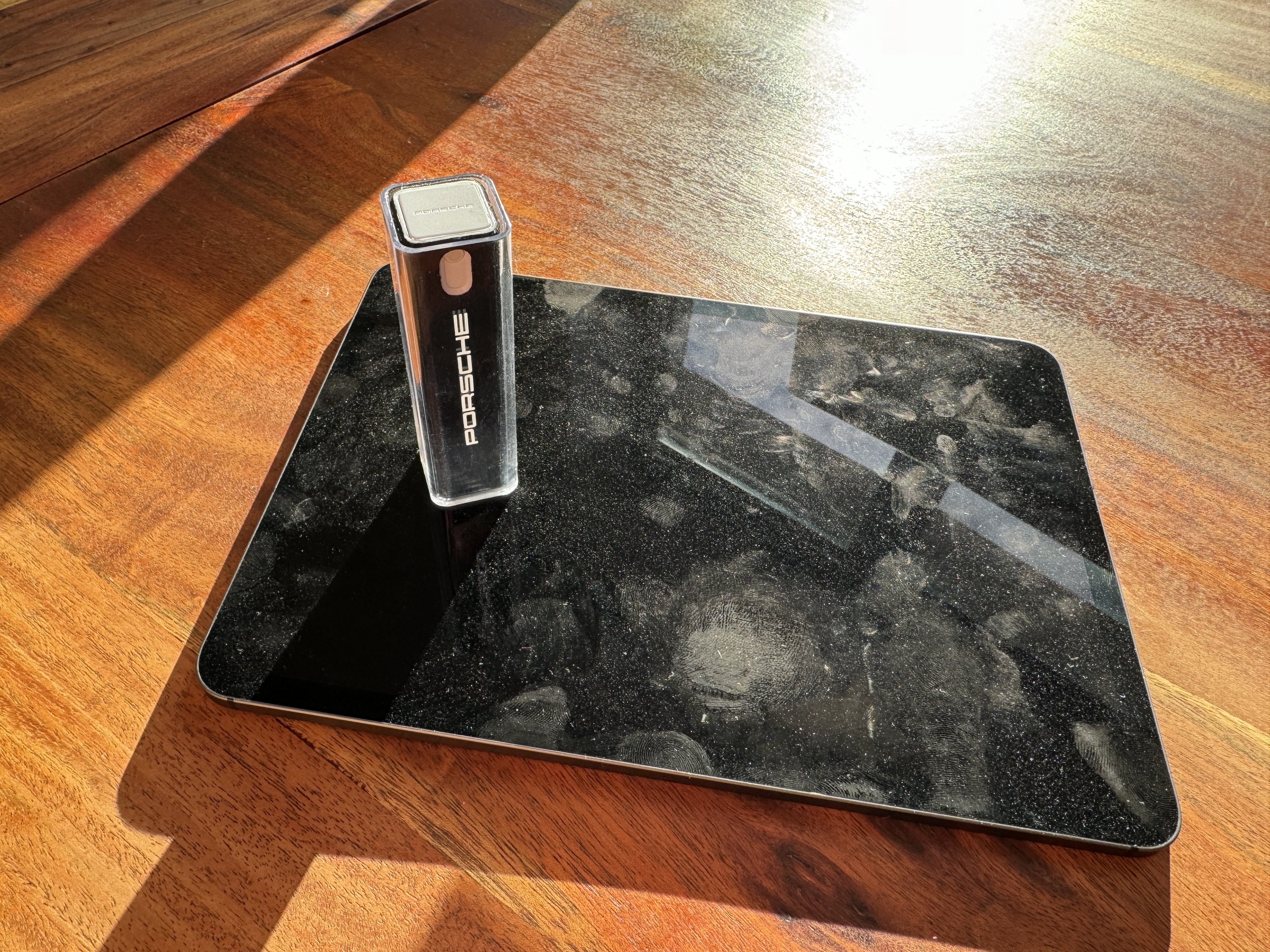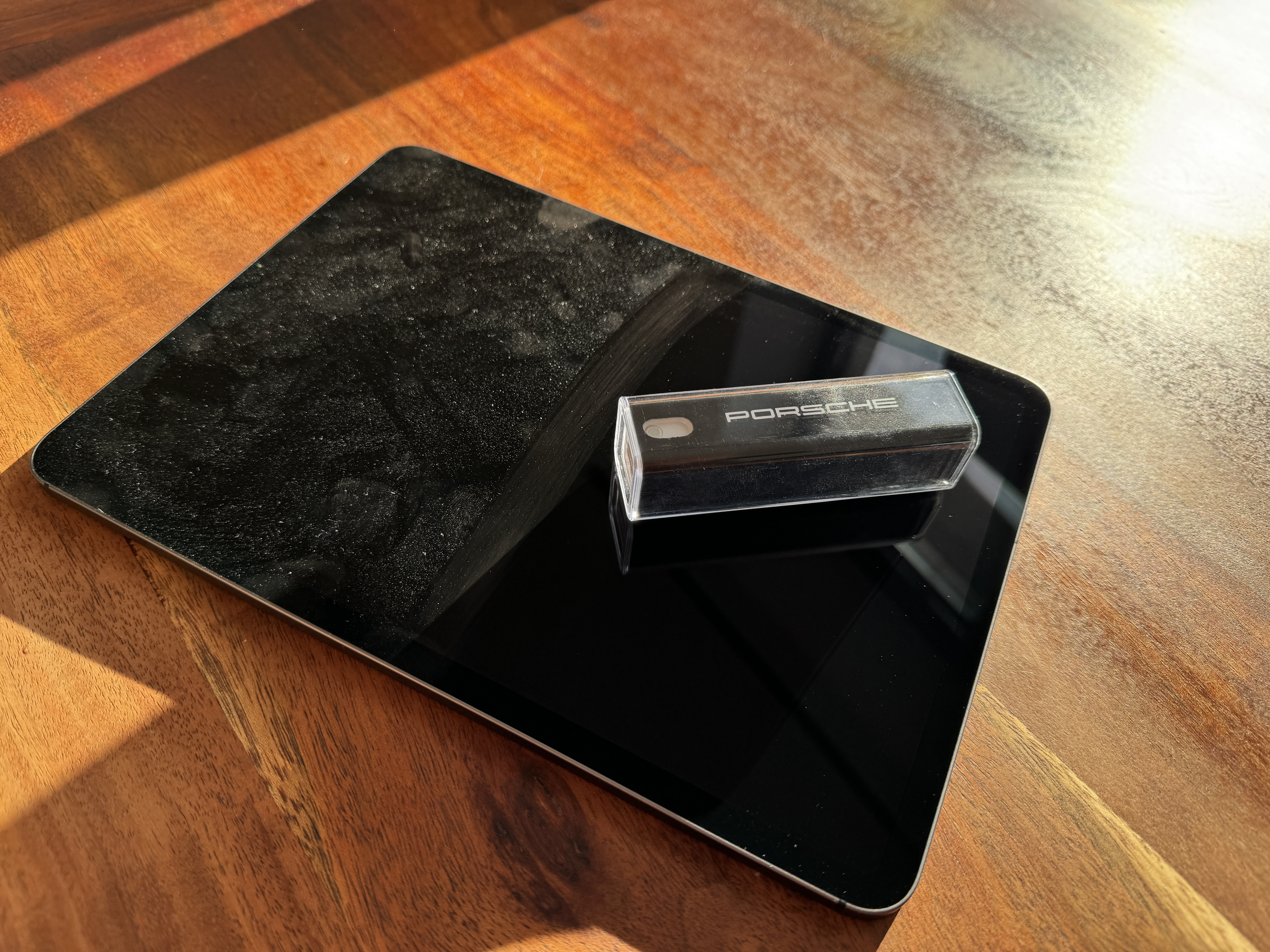 Zcela upřímně se displeje leští stadno a rychle, ovšem nesmíte to přehnat s dávkováním tekutiny. Jakmile se vám zamočí všechny čtyři strany, pak již displej hned tak nevyleštíte. Zkrátka to chce trošku cviku a hlavně citu. Na výsledky displeje vyčištěného pomocí Porsche Display Cleaner se můžete podívat v galerii výše. Já jej budu používat na leštění displeje v autě, ovšem samozřejmě jej lze použít na čištění iPadů, iPhonů a všeho, co vás jen napadne. Cena za toto balení je 24€ a najdete v něm 10,5 ml čistící tekutiny. Jedinou nevýhodou je, že se vám snadno může stát, že zasunete lahvičku do obalu naopak a pak při vysouvání budete tlačit na rozprašovač. Je tedy potřeba dávat pozor na to, abyste strany neotočili. Samozřejmě použití hadru a „okeny“ je stejně efektivní, ovšem zdaleka ne tak efektní jako když vytáhnete z kapsy tuhle srandu.