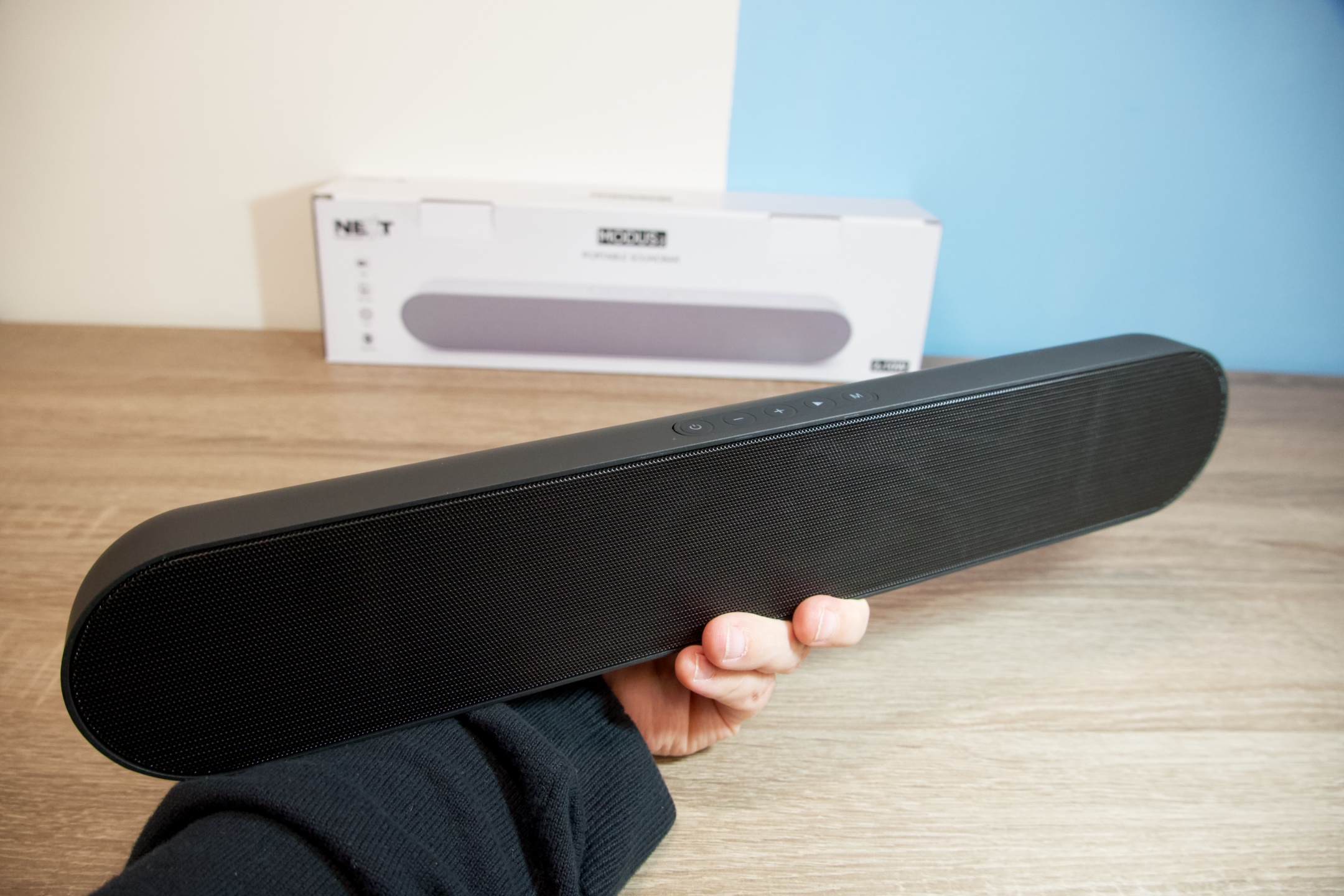 Modus2 od NEXT Audio patří mezi ta zařízení, kterým to pro běžný poslech bude slušet stejně pod televizí jako u monitoru počítače nebo na poličce v ložnici. Osobně mne překvapil výkon, který působí na soundbar těchto rozměrů mnohem mohutněji a také prostorovost je nadprůměrná. Samozřejmě nelze očekávat mocné basy, které by dokázal vyzářit 8″ nebo 10″ subwoofer, ale to byste si Modus2 do tašky už dát nechtěli. Přitom právě přenositelnost a univerzálnost je zde velkým plusem. Zvukový projev je ve středovém pásmu trochu výraznější, ovšem nijak agresivním způsobem. To zároveň přispívá k velmi dobré srozumitelnosti dialogů při sledování filmů a dáte-li soundbaru ochutnat trochu větší porci basů z ekvalizéru, poradí si s tím obdivuhodně dobře. Pokud jde o pozůstatky otisků ulpívajících na povrchu, na nějaké ty stopy po nich nejspíš narazíte, ale nejde o nic dramatického. Stran stability spojení jsem se při testování s žádnými problémy nesetkal a reproduktor se po zapnutí poměrně rychle spojil s posledním spárovaným protějškem.