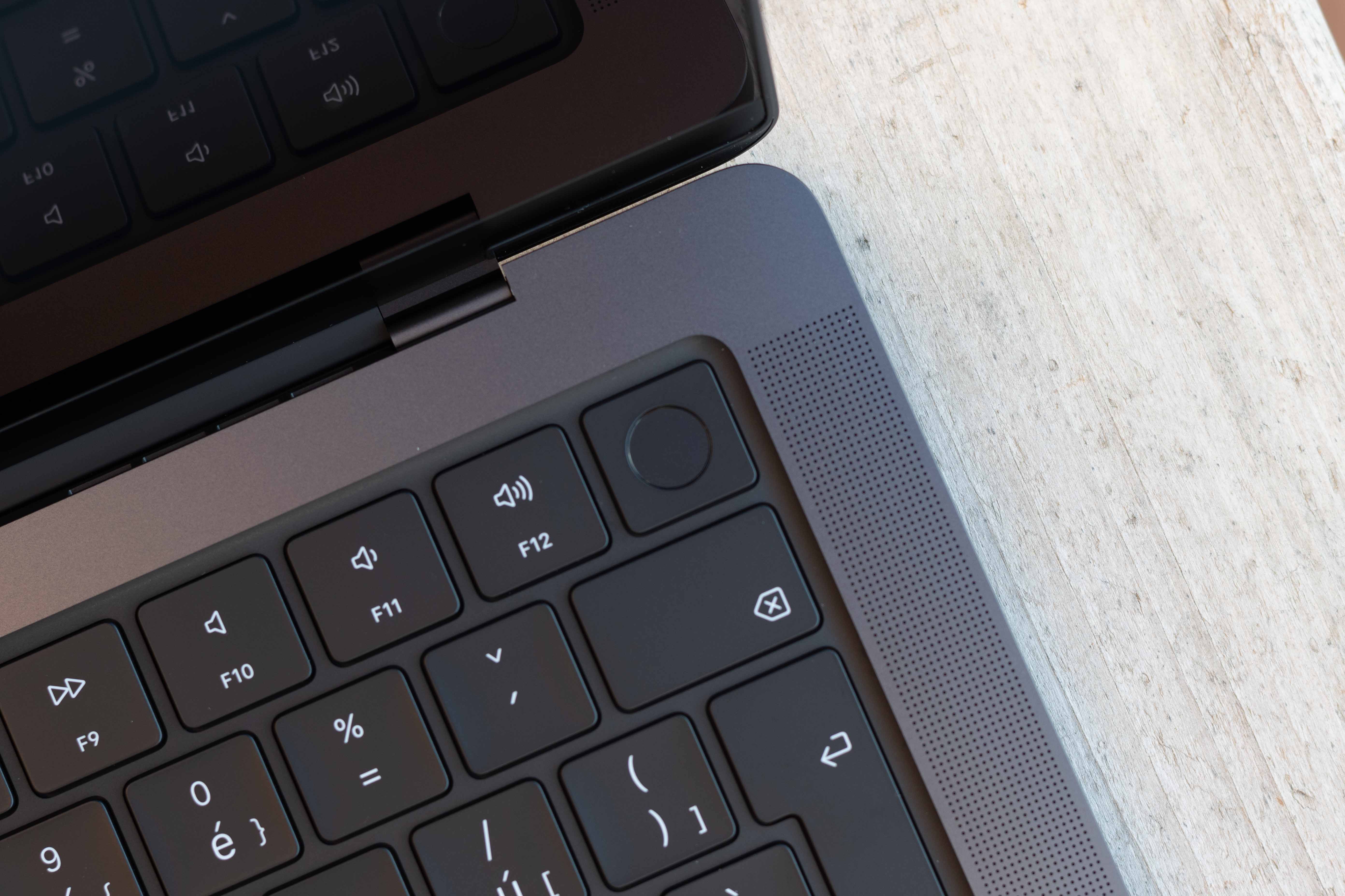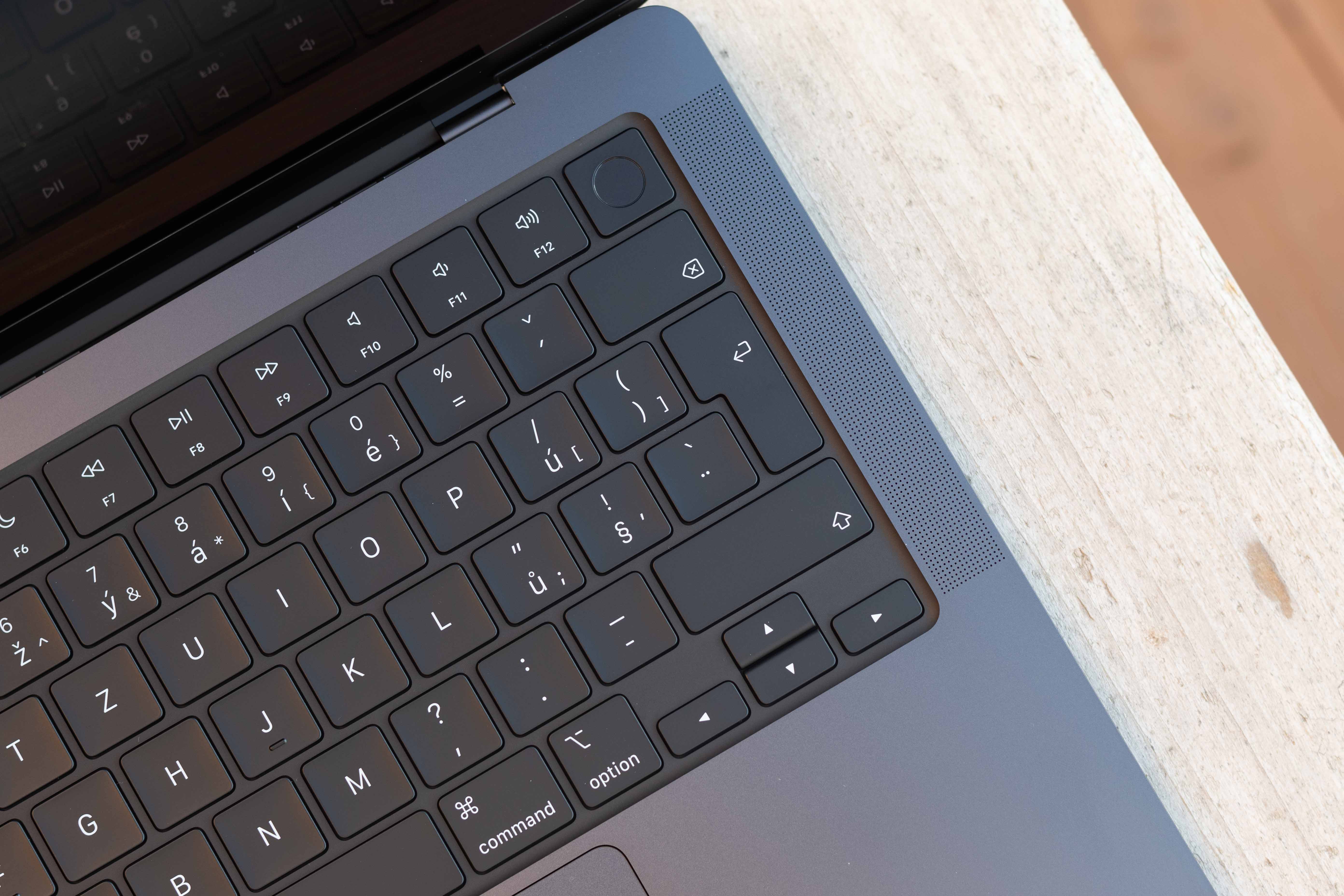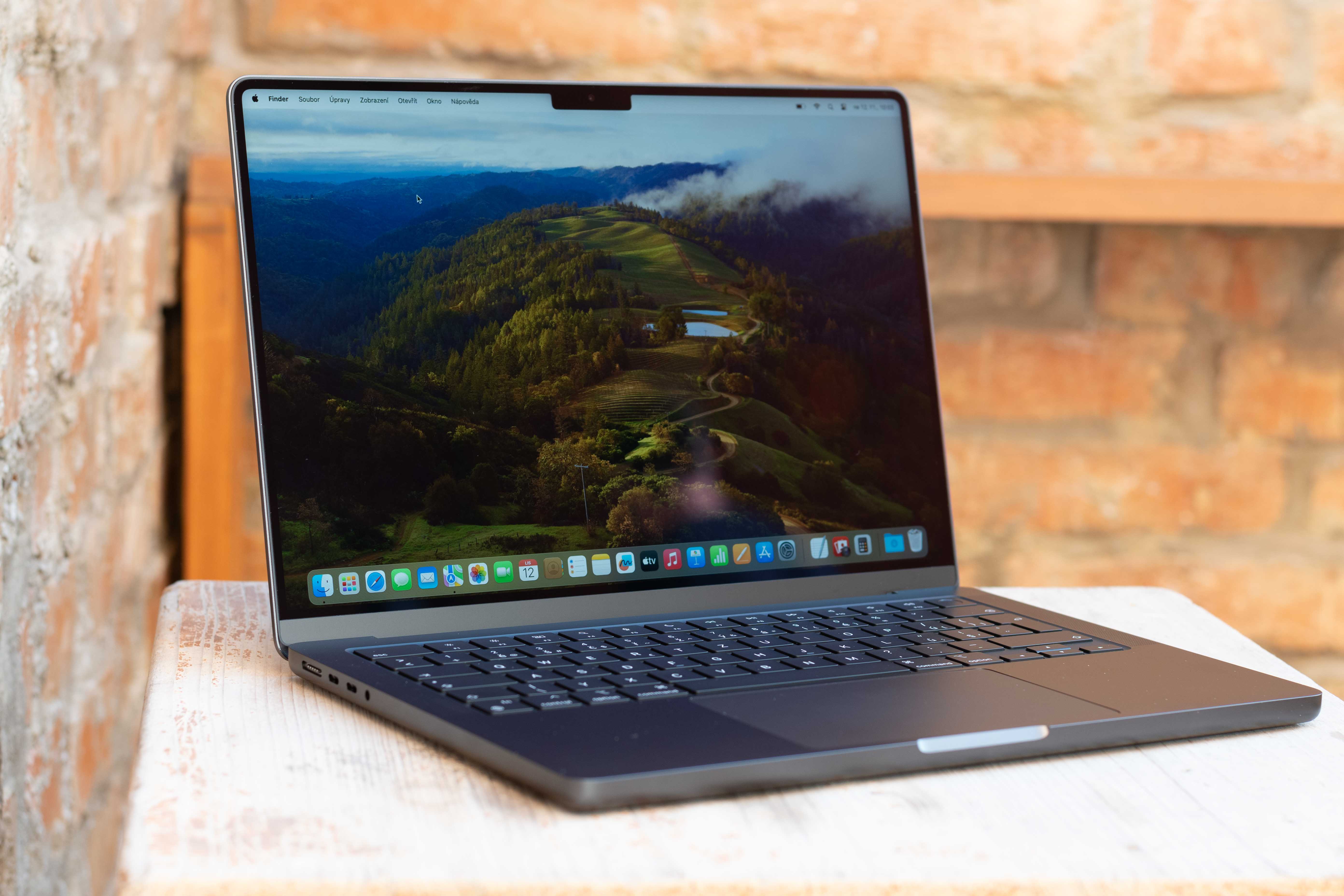 Výjimečná je ale vesmírně černá varianta třeba i pro své povrchové opracování. Apple o něm ve své tiskové zprávě píše konkrétně toto: „Díky přelomovému chemickému procesu jsou navíc notebooky pokryty anodizovanou vrstvou, takže na nich tolik neulpívají otisky prstů,“ a já musím dát jeho slovům za pravdu. Otisky prstů či jiné nečistoty totiž na těle Macu skutečně ulpívají podstatně méně než tomu je na jiných MacBoocích, což je pro mě osobně poměrně zásadní zpráva. Ze srdce totiž nenávidím umatlaný MacBook, kvůli čemuž jsem ostatně nyní věrný stříbrnému MacBooku Air, na kterém nejsou tyto patálie až tak moc vidět. V živé paměti mám nicméně doby, kdy jsem pracoval na 16“ MacBook Pro (tehdy ještě s procesorem Intel) a jak mě vnitřně ničilo vidět jeho víko neustále „zapatlané“ otisky prstů, které se na něm zachytávaly snad při pouhém pohledu na něj. A ač jsem Mac tehdy čistil, jak jsem jen mohl, po pár dnech jsem to zkrátka vzdal, protože jsem pochopil, že jej ušpiním snad i v gumových rukavicích ve vakuu. Zde ale nic takového ani po dobrých dvou týdnech testování nepozoruji. Jasně, nějaké ty drobnosti na těle MacBooku zůstanou, ale nejedná se o žádné extrémy. Dokonce se nebojím říci, že otisky prstů jsou na tomto stroji viditelné méně než na mém pracovním MacBooku Air a to i přesto, že je tělo modelu Pro podstatně tmavší a tedy by na něm vše mělo být vidět daleko lépe. Apple tedy v tomto směru za mě odvedl skoro až neuvěřitelnou práci a já se modlím, ať stejnou technologii nasadí příští rok i u MacBooků Air a já se můžu s klidným srdcem vrátit na tmavý počítač.