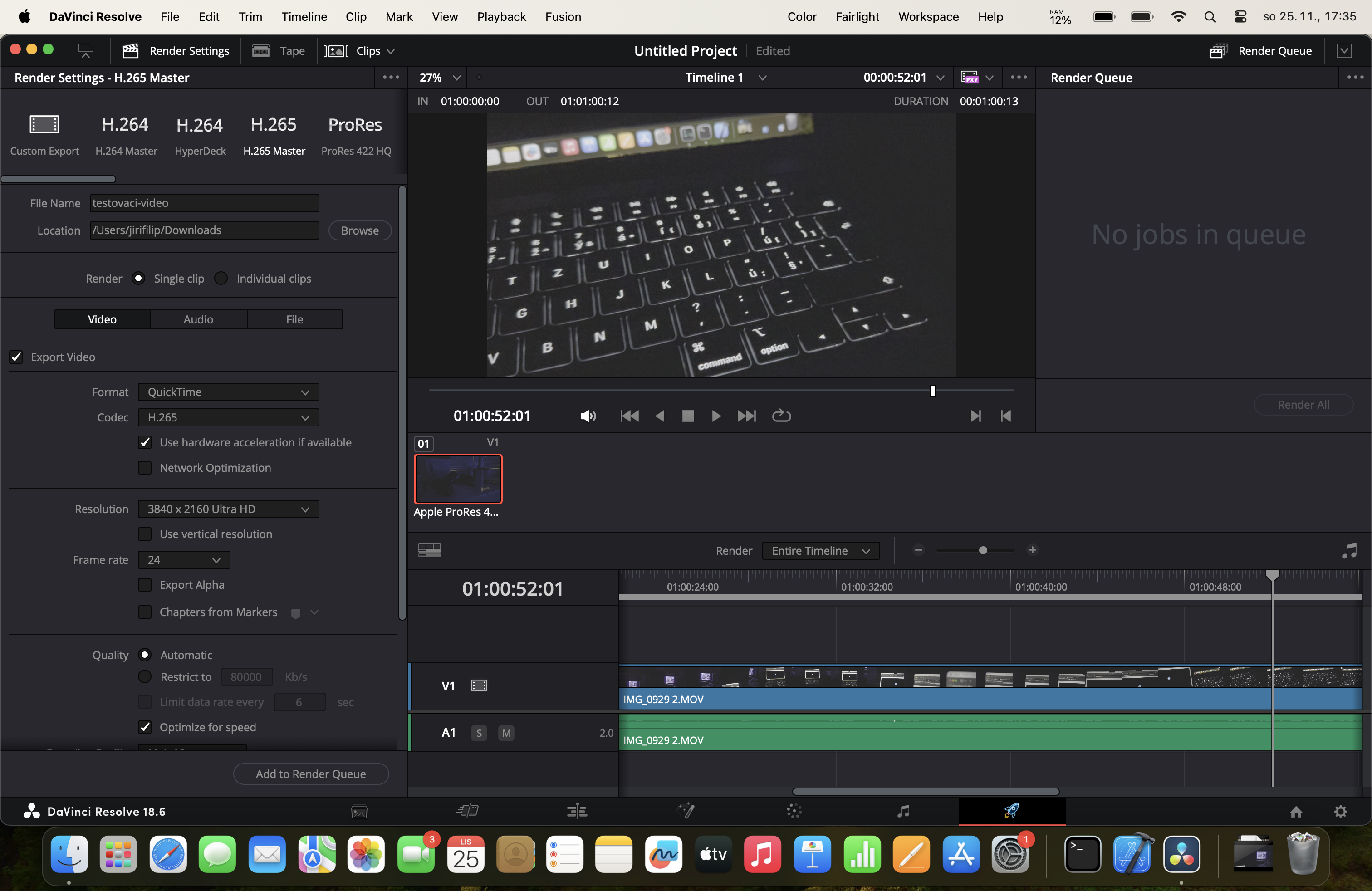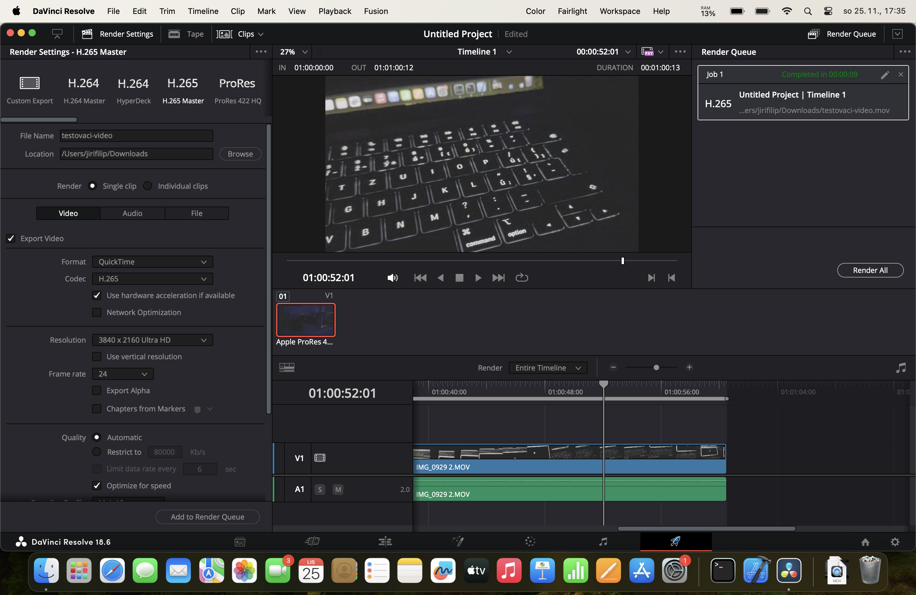 Kromě videa z iPhonu jsem si v DaVinc Resolve pohrál taktéž s videem natočeným z RED kamer, které je na stránkách RED k dispozici zdarma. Konkrétně se jednalo o video v 8K rozlišení v 96fps, byť bohužel bezplatná verze DaVinci Resolve nabízí podporu jen pro 4K 60fps. I toto rozlišení ale krásně ukázalo, jak silný M3 Max v MacBooku Pro je. S videem jsem si na něm totiž mohl hrát naprosto dle libosti, aniž by se u Macu objevovalo byť sebemenší sekání a co víc, neroztočily se ani ventilátory. Psát sem, že totéž video spuštěné na MacBooku Air M1 jej prakticky znefunkčnilo kvůli brutálním zásekům je pak asi zbytečné.