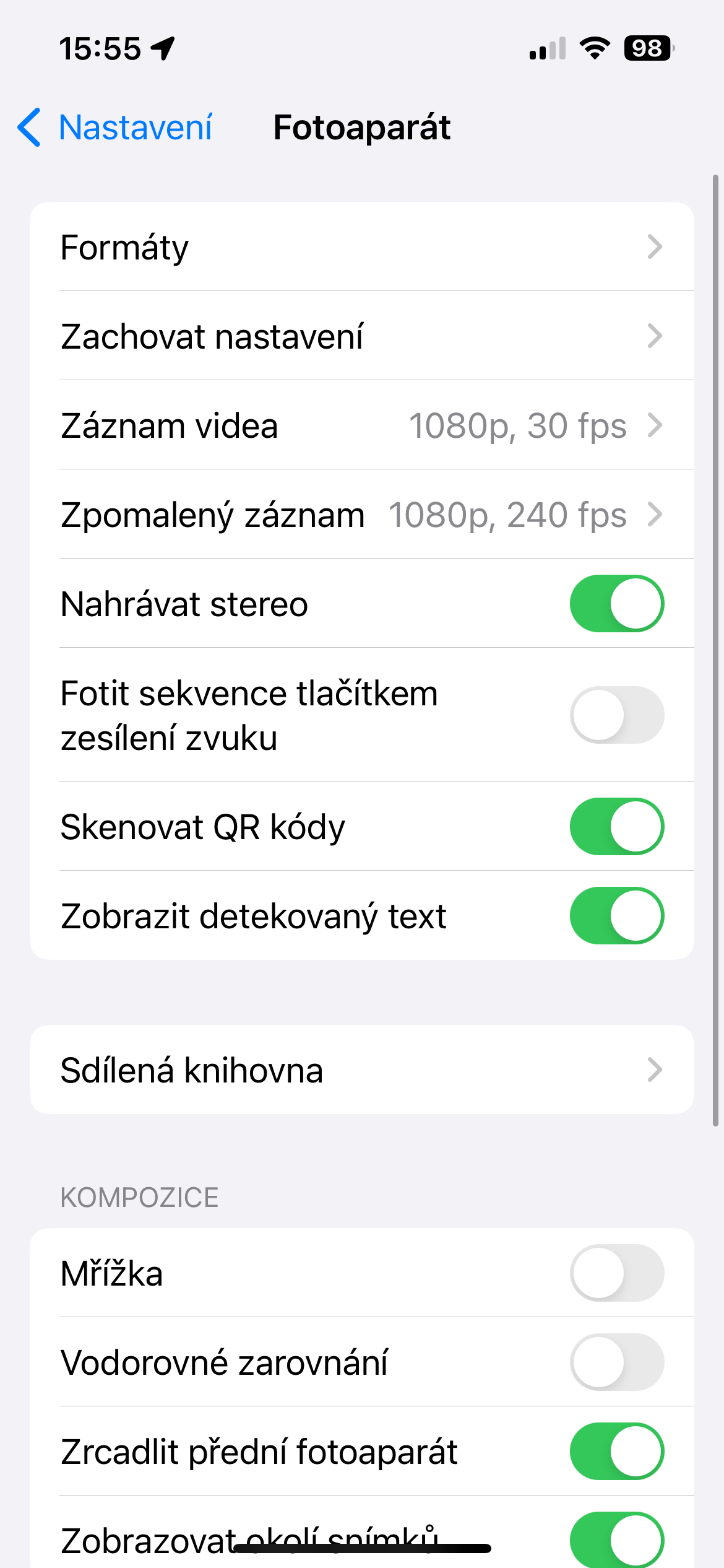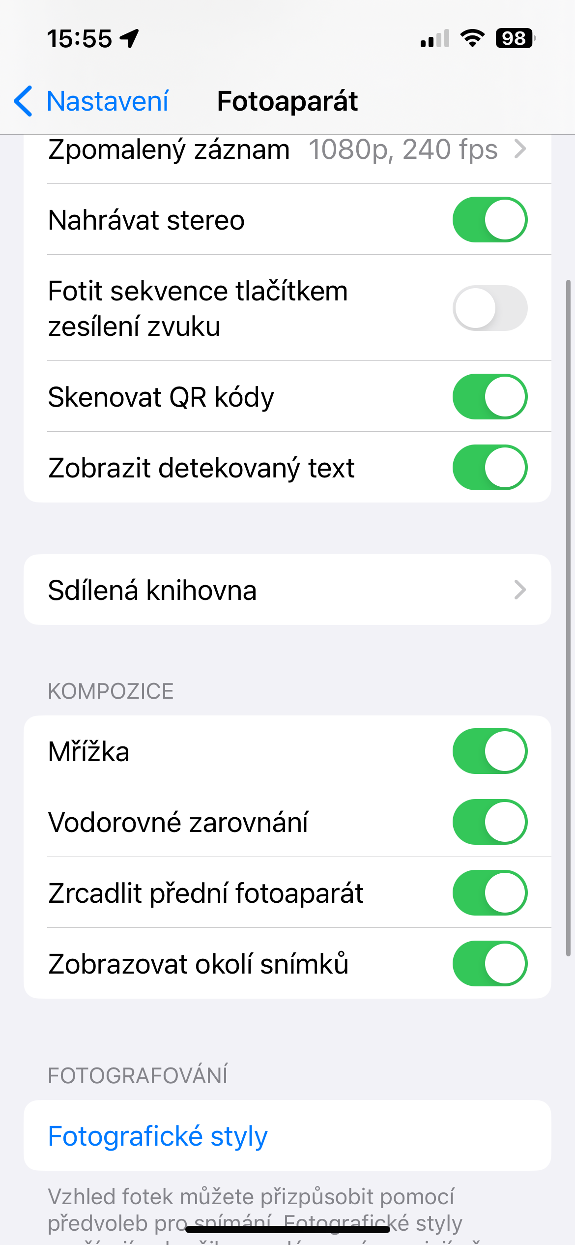 Tento tip se týká spíše fotoaparátu než Fotek, určitě jej ale oceníte. Fotoaparát vašeho iPhonu vám v iOS 17 nabízí možnost ještě lépe kontrolovat vodorovné zarovnání pomocí virtuální vodováhy. Ta by měla být aktivována automaticky, pokud ji ale při focení nenacházíte, zamiřte do Nastavení -> Fotoaparát, a v sekci Kompozice aktivujete položku Vodorovné zarovnání.