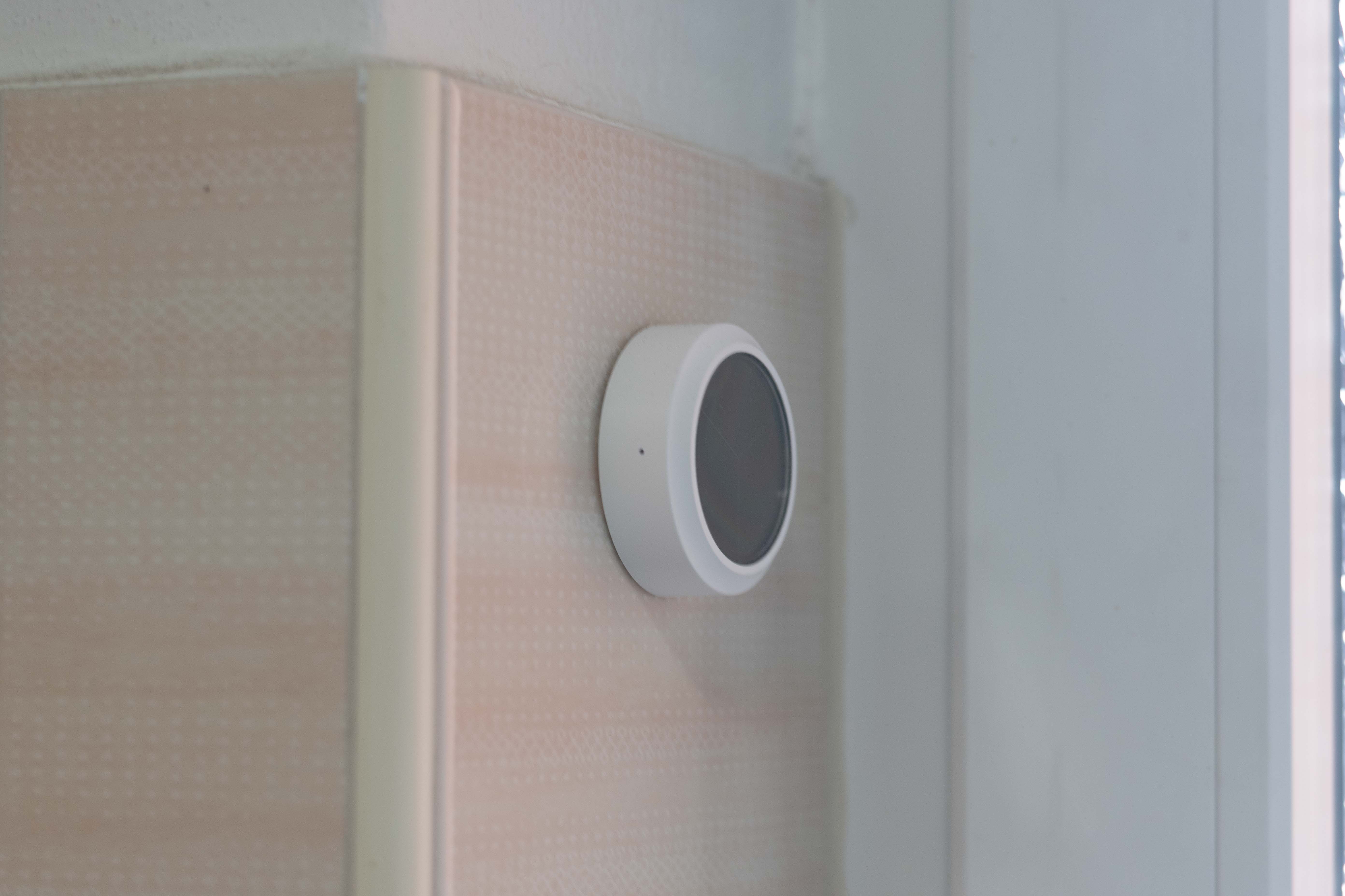 Snímač Meross MS100FHHK má malé kruhové tělo o průměru 56 mm a výšce 18 mm, které je vyrobeno z bílého plastového prstence a horního solárního panelu sloužícího pro napájení. Jen pro zajímavost, senzor v případě, že intenzita okolního světla dosáhne alespoň 350 Lux, nespotřebovává žádnou energii ze své baterie CR2477, jelikož je díky solárnímu panelu na horní straně napájen právě světlem. Pokud vás pak zajímá to, jak se senzor připevňuje ke stěně, je to pomocí klasické oboustranné lepící pásky. Je nicméně možné jej třeba i jen někam položit, například na parapet.