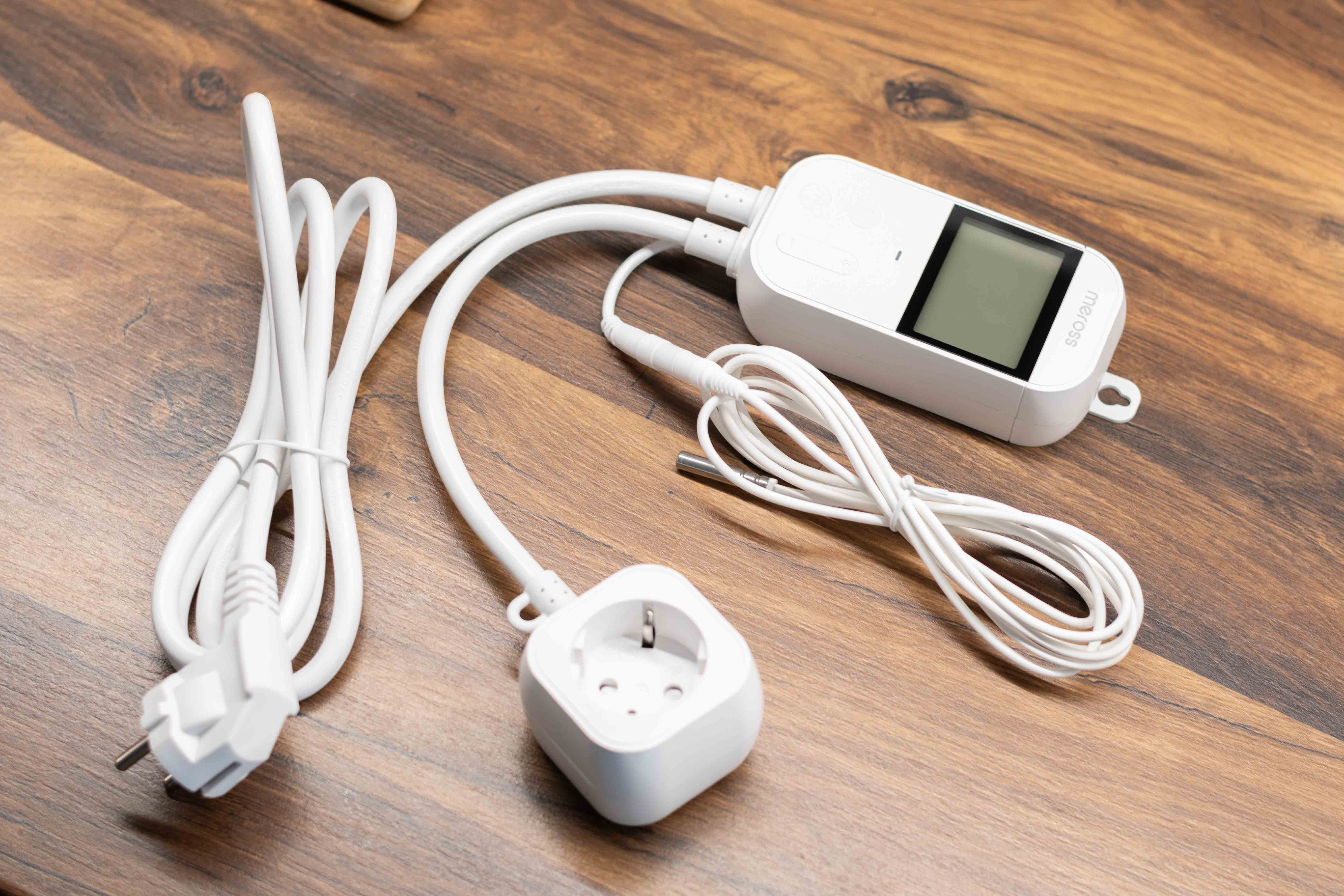 Meross MTS960HK je ve své podstatě chytrou zásuvkou, která funguje v závislosti na naměřené okolní teplotě. Tu snímá skrze senzor, který z ní visí na krátkém kabelu, přičemž jakmile je teplota v okolí jiná než tak, kterou má termostat nastaven coby výchozí (ať už pro vytápění či naopak pro ochlazování), zásuvka se automaticky sepne a zařízení připojené v ní začne topit či chladit.