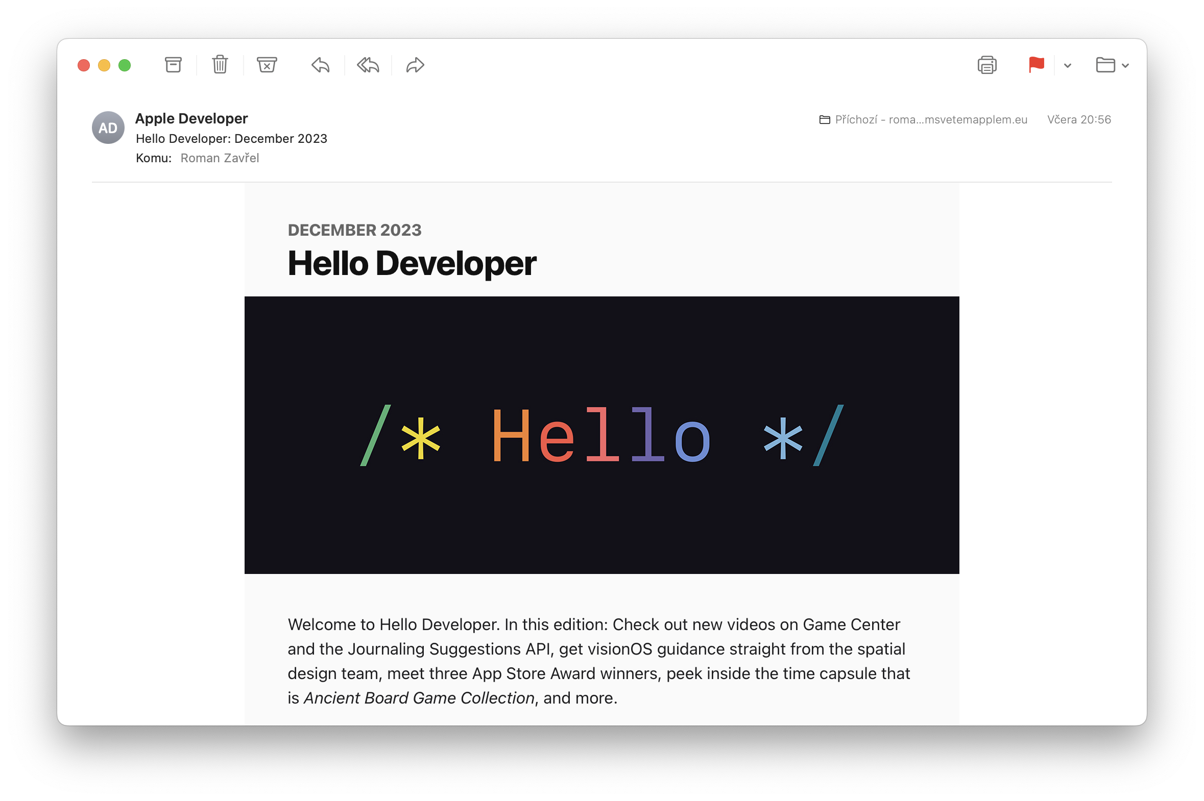 Apple rozeslal vývojářům prosincové číslo svého newsletteru, ve kterém se tentokrát věnuje Game Center, otázkám a odpovědím pro VisionOS a také vítězům App Store Award.