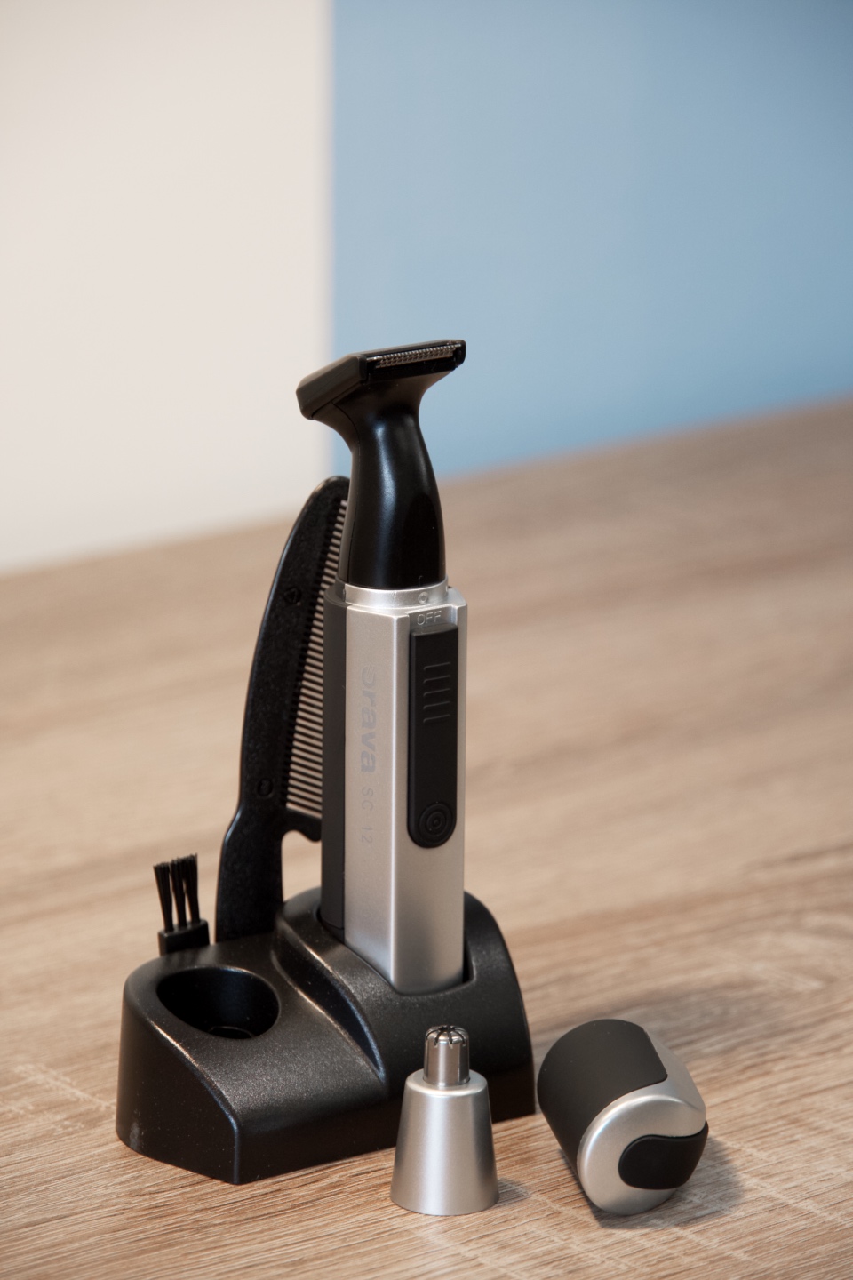 Osobně jsem majitelem vícedílného značkového setu, k přizpůsobení detailů mne však zkušenosti přiměly si již před časem pořídit produkt podobný SC-12. Orava je o něco málo mohutnější než je u podobných zastřihovačů zvykem, díky tomu však mnohem lépe sedí do ruky, kdy poloha palce vychází přesně na spínač, což v kombinaci s nízkou hmotností vnímám pozitivně. Používání je komfortní a uživatele nečeká žádné tahání, cukání nebo dokonce bolestivé trhání. Zalíbil se mi i přiložený stojan, který je v koupelně rozhodně lepším řešením, než umisťování do nejrůznějších skleniček a podobně. Příjemným aspektem je také poměrně nízká úroveň hlučnosti a vibrací, díky čemuž se dá při tvarování dosáhnout vysoké přesnosti.