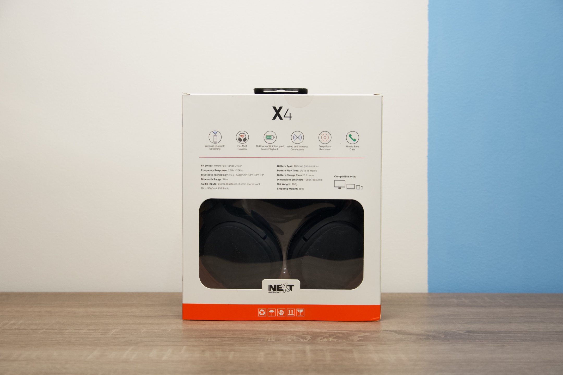 Trocha technických detailů jistě neuškodí a dokáže dokreslit celkovou představu o X4. Na prvním místě je třeba zmínit 40 mm průměru celopásmových měničů a frekvenční rozsah 20 Hz až 20 kHz. Bezdrátové spojení zajišťuje standard Bluetooth 5.0 s profily A2DP, AVRCP, HSP, HFP a dosahem až 10 m. Energii sluchátkům dodává Li-ion baterie s kapacitou 400 mAh, jež umožňuje provoz až na 18 hodin, přičemž plného nabití sluchátka dosáhnou zhruba za 2,5 hodiny a v pohotovostním režimu vydrží až 600. Při přehrávání z SD karet je podporován formát mp3 a media do 32 GB velikosti.