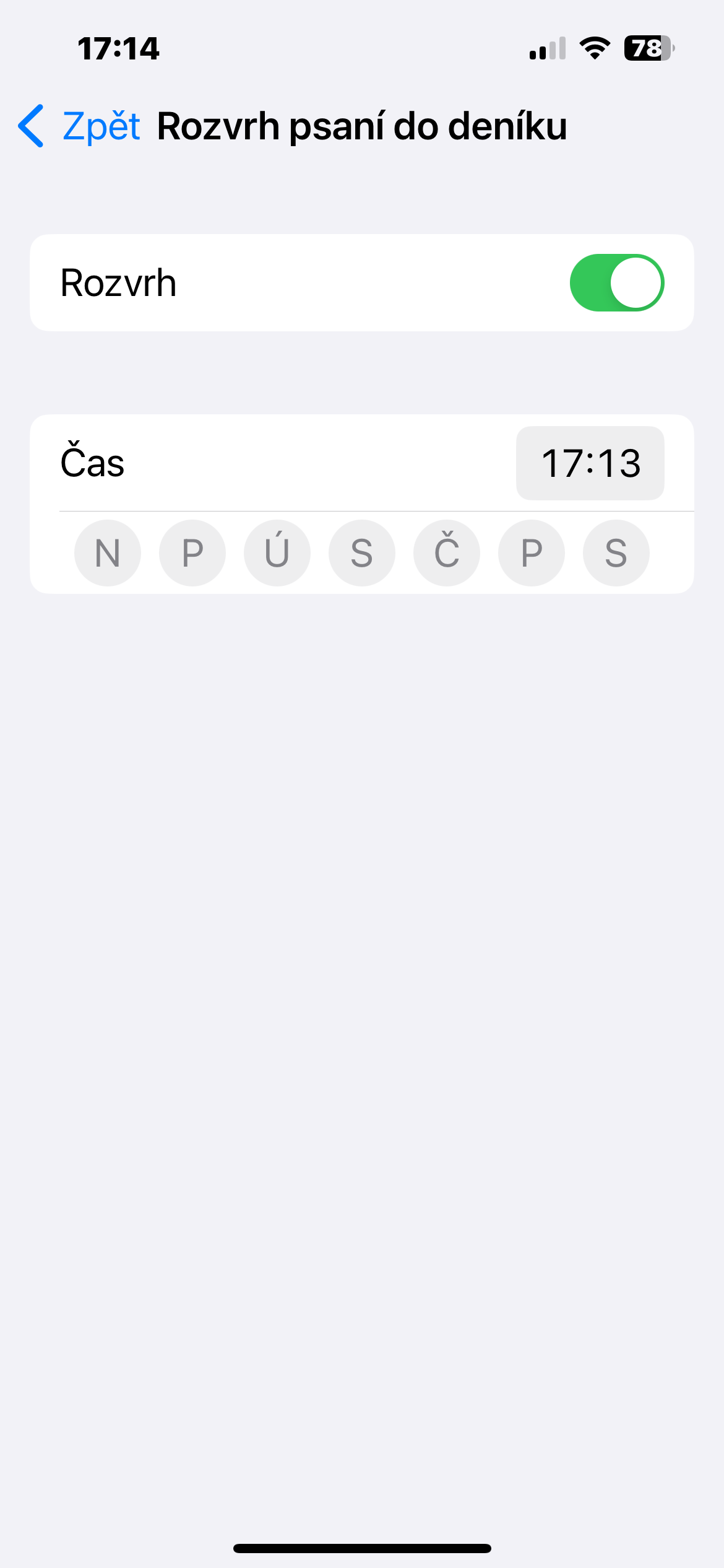 • Nastavte dny, ve které si chcete psát deník, a určete hodinu pro notifikace.