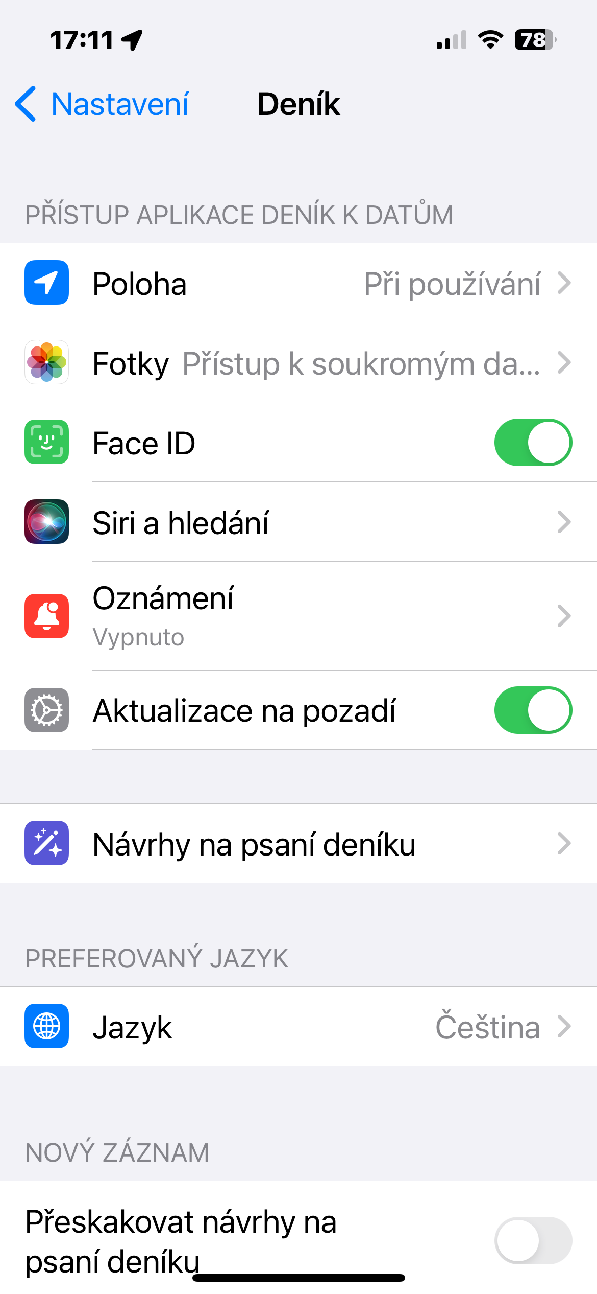 Jak v iOS 17.2 nastavit notifikace na deníkové zápisky