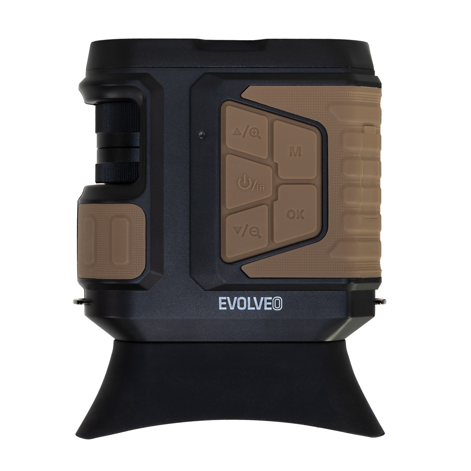 Binokulární dalekohled EVOLVEO NightVision W25 má ergonomické tělo odolné proti kapkám vody. Protiskluzový povrch zajistí bezpečný a stabilní úchop, ovládací tlačítka jsou umístěna přímo pod prsty uživatele.