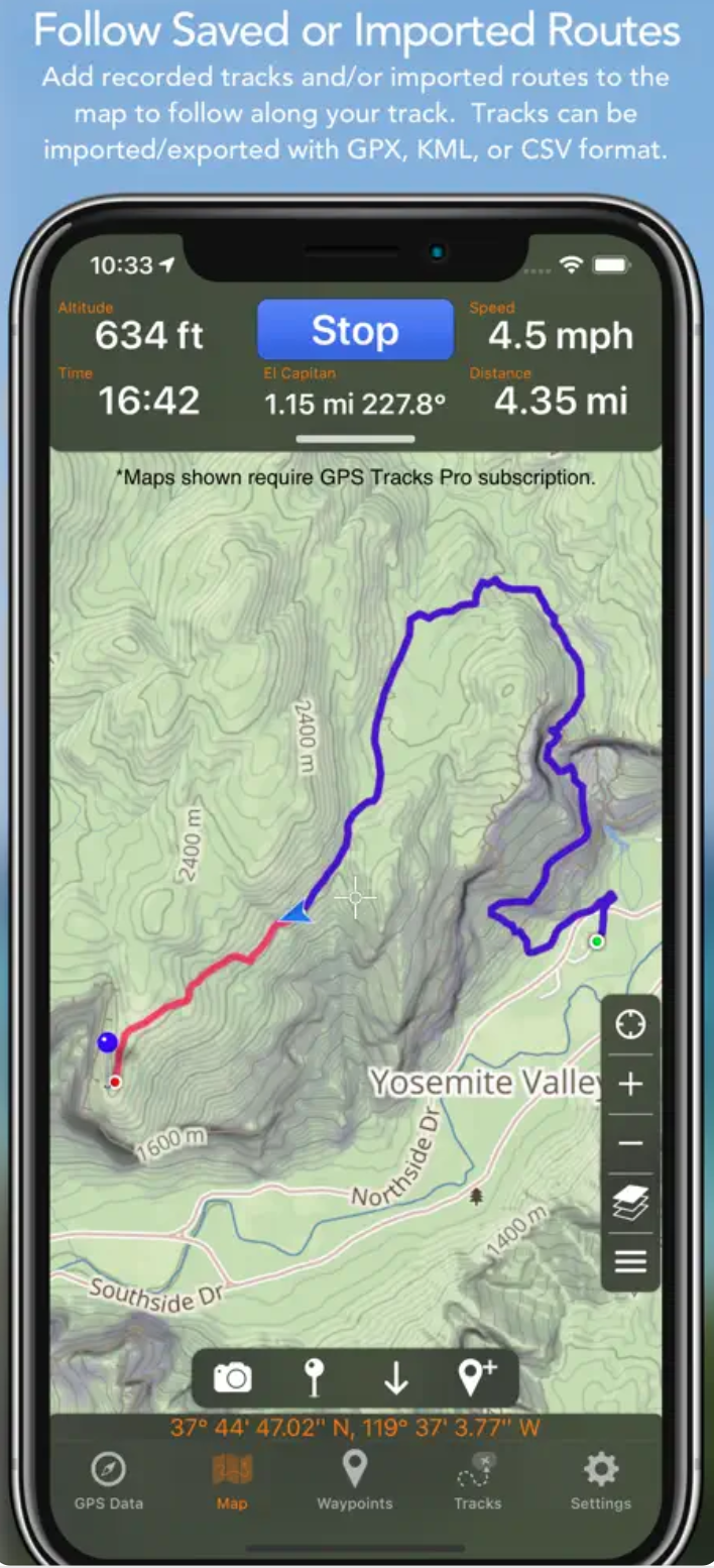 GPS Tracks je ideální aplikace pro vaše outdoorové navigační potřeby, díky níž je navigace na konkrétní místo a sledování vašich outdoorových aktivit velmi jednoduché. Bude sledovat vaše aktivity a umožní vám snadnou navigaci na souřadnice.