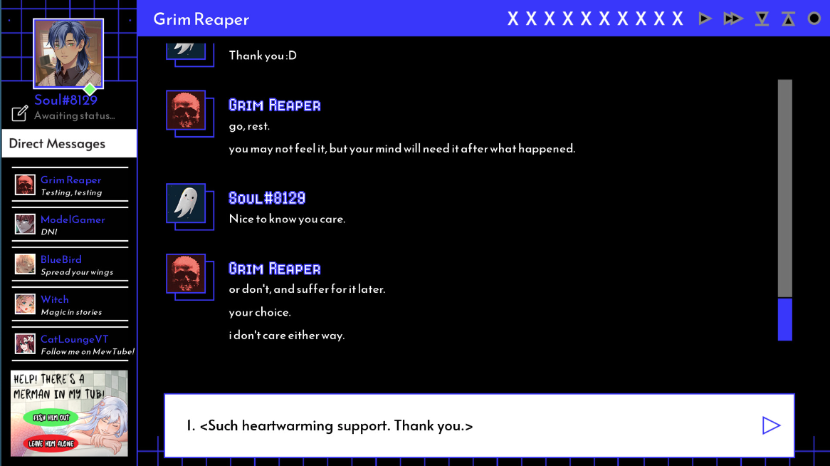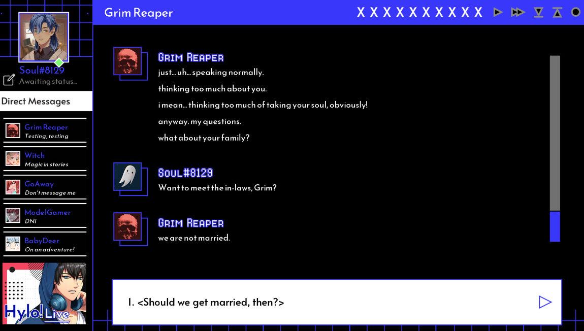 Bojujte proti tomu, kdo si dělá zálusk na vaši duši, a budujte s ním vztah v simulátoru romantického chatu A Date with Death, ve kterém randíte se samotným Smrťákem. Vytvořte si vlastní postavu, vyzdobte si svůj příbytek a chatujte s okouzlujícím, ale nebezpečným Smrťákem prostřednictvím textových zpráv a videohovorů.