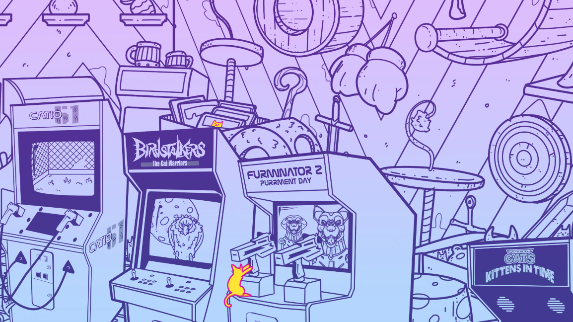 Připravte se na herní výpravu v čase v roztomilém a zábavném titulu An Arcade Full of Cats. Připojte se k Leovi a Fofiňovi, kteří procházejí kočičí verzí arkádové éry od roku 1980 do roku 2000 a zároveň se snaží najít cestu zpět do současnosti!