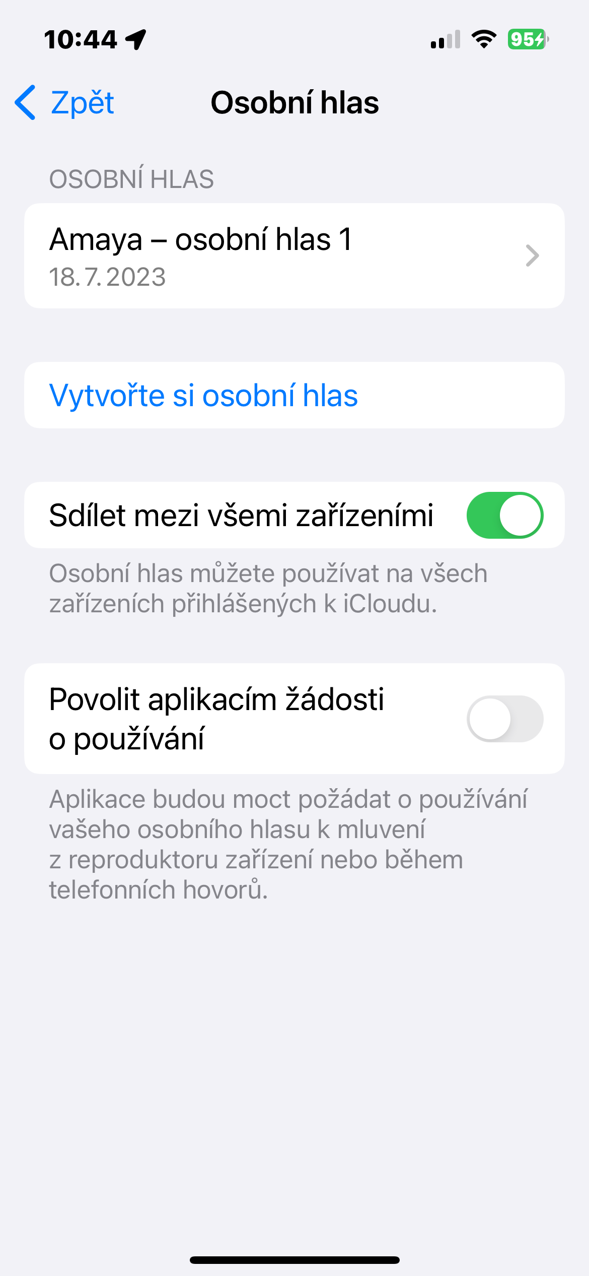 Funkce Osobní hlas vám spolu s funkcí Živá řeč umožní vytvořit a bezpečně uložit repliku vašeho hlasu a používat ji prostřednictvím textu v iPhonu (nebo iPadu). Osobní hlas lze nastavit i v české verzi iOS, samotné čtení vět ale probíhá v angličtině. Celý proces vytvoření Osobního hlasu spočívá v tom, že vás iPhone nechá přečíst sérii vět. Následovat bude zpracování vašeho hlasu a poté samotné vytvoření Osobního hlasu.