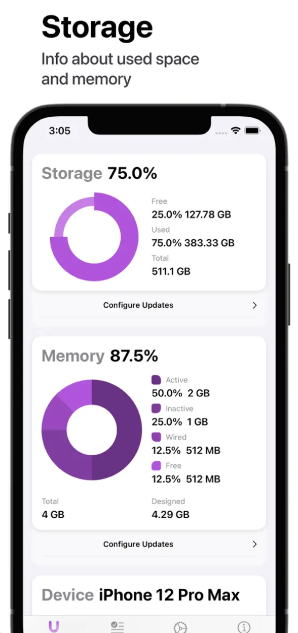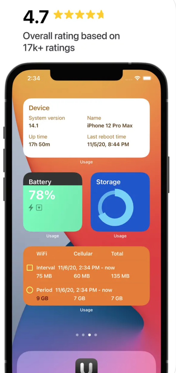 Aplikace Usage Widgets je nástroj pro sledování aktivity vašeho zařízení, využití dat, rychlosti připojení a dalších údajů. Kromě přehledných grafů přímo v aplikaci nabízí Usage Widgets také pestrou paletu nejrůznějších widgetů pro plochu i pro uzamčenou obrazovku vašeho iPhonu. Díky těmto informativním widgetům budete mít vždy neustálý přehled o systémových prostředích vašeho iPhonu.