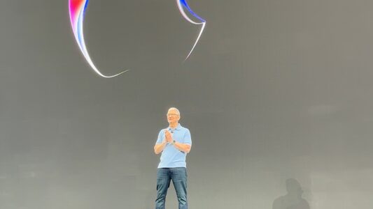 Apple Vision Pro spojuje tisíce inovací a vytváří produkt, který se nepodobá ničemu, co svět dosud viděl. Je to mimořádný úspěch, a jak mnozí z vás mohou potvrdit, trvalo to roky. Apple Vision Pro je realitou díky vám – díky vašemu odhodlání, vášni a vašemu příspěvku ke zvláštní kultuře, která ve společnosti Apple pohání inovace. Zvláště bych chtěl poděkovat všem týmům, které se tomuto projektu věnovaly a kteří v průběhu mnoha let vynaložili nespočet hodin, aby znovu posunuli hranice možného.