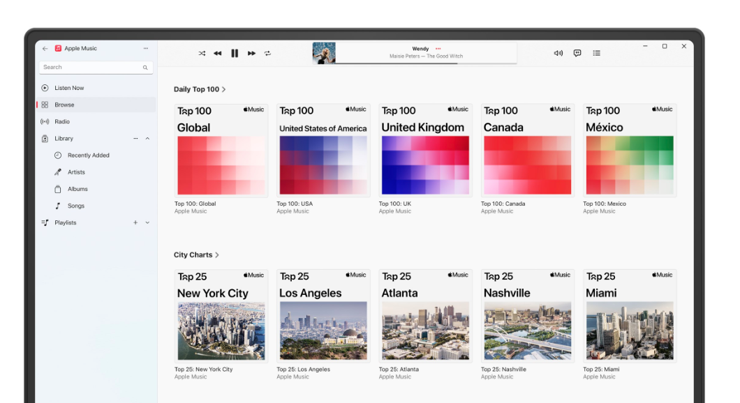 Aplikace Apple Music, Apple TV a Apple Devices, které společnost Apple testovala pro počítače se systémem Windows, byly oficiálně spuštěny, čímž skončilo dlouhé období předběžného přístupu. Aplikace iTunes tak na některých počítačích definitivně skončila. Aplikace Apple Music, Apple TV a Apple Devices jsou součástí snahy společnosti Apple rozdělit iTunes na PC na více platforem, aby odrážely fungování těchto aplikací na počítačích Mac. V operačním systému Windows 10 a novějším si mohou uživatelé stáhnout tři samostatné aplikace pro správu zařízení a přístup k obsahu Apple Music a Apple TV.