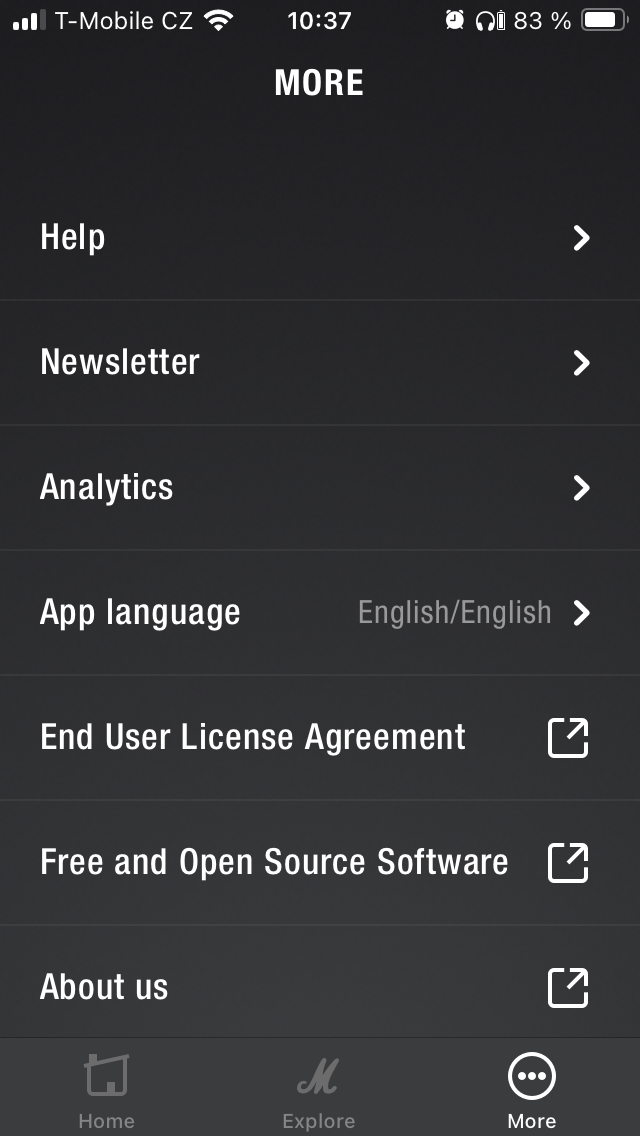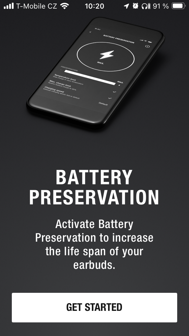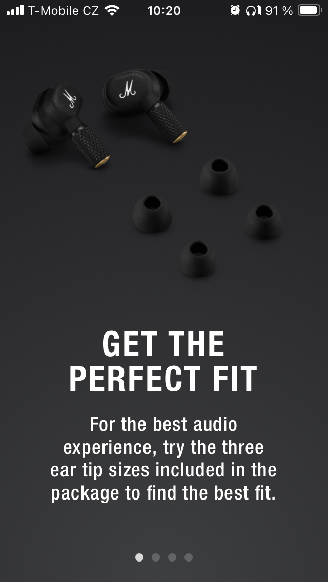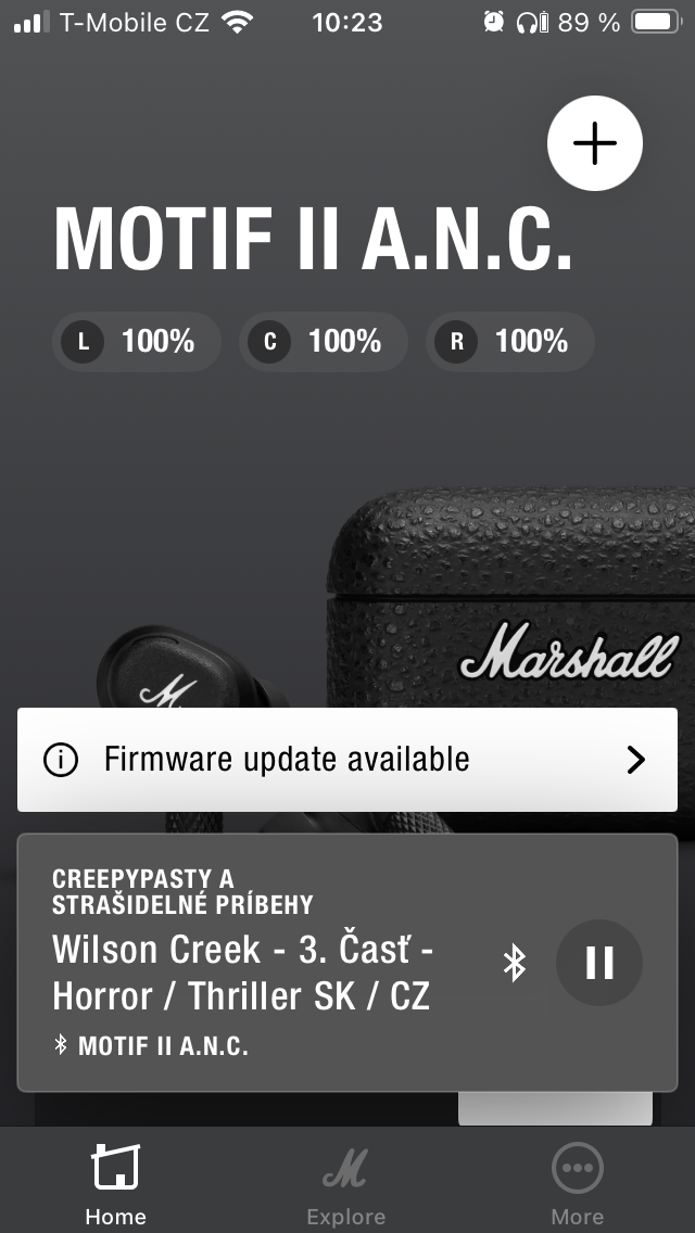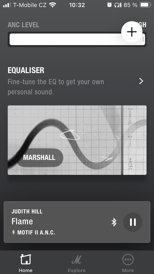 Nejprve jsou to zásadní data o stavu nabití pravého a levého sluchátka i pouzdra. První sekce je pak zaměřena na potlačení hluku a propustnost, přičemž lze v obou případech zvolit intenzitu ve 3 úrovních nebo funkci zcela vypnout. Dále je uživateli k dispozici 5pásmový ekvalizér s 5 předpřipravenými presety a variantou „Custom“ pro úpravu dle individuálních požadavků, takže si každý najde „svůj zvuk“. Níže je možné přizpůsobit dotykové ovládání, projít si informace o tom, jak operuje Spotify tap a přistupovat k dalším položkám, včetně využití funkce „Battery Preservation“, kde je opět na výběr ze 3 levelů opatření pro úsporu energie. Pakliže by vás MOTIF II A.N.C. zaujaly natolik, že zvažujete zjistit, co dalšího se nachází v nabídce Marshall, je zde pro tyto potřeby tlačítko „Explore“, zatímco pod „More“ najdete nápovědu, přihlášení k odběru novinek a několik odkazů směřujících na web společnosti.