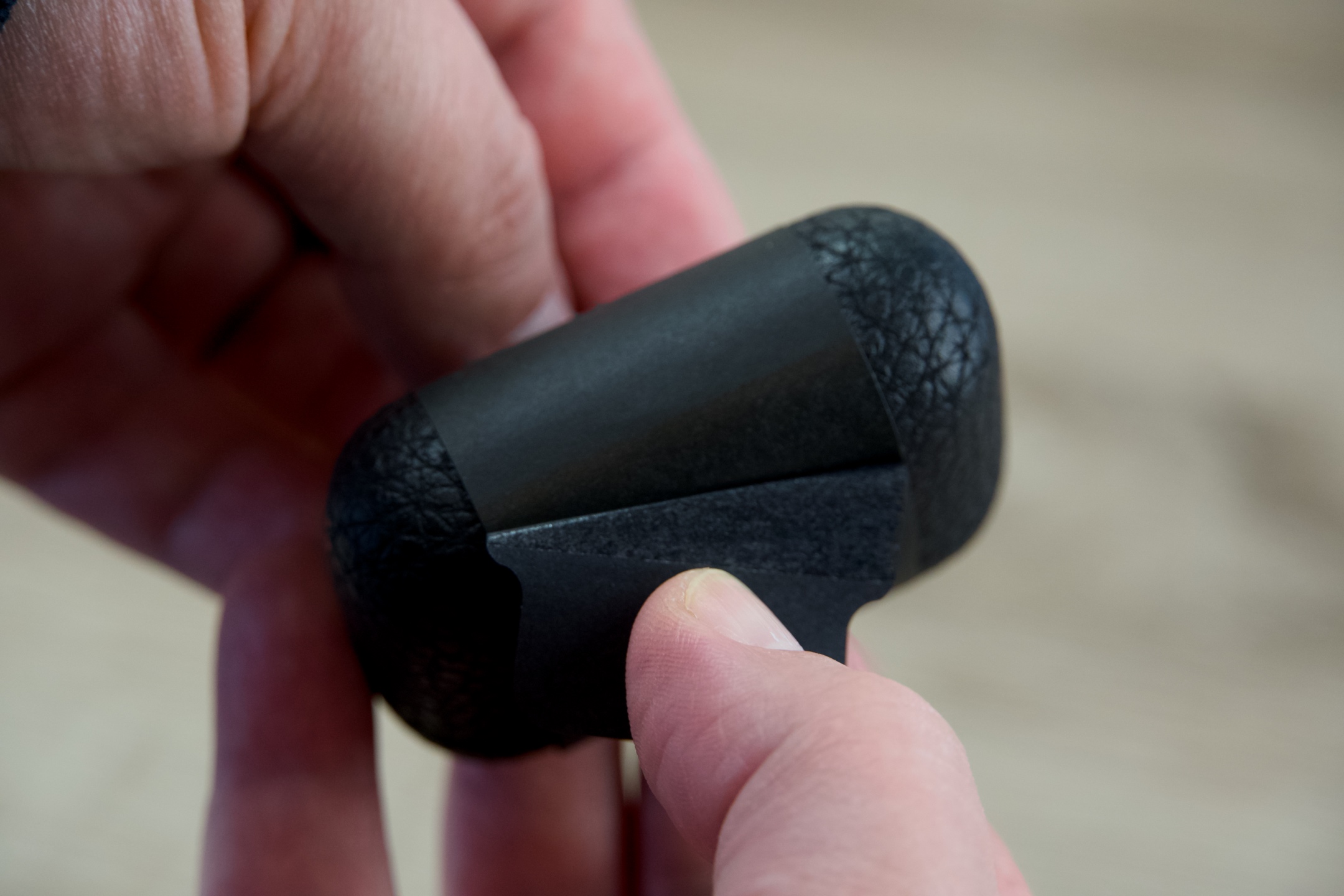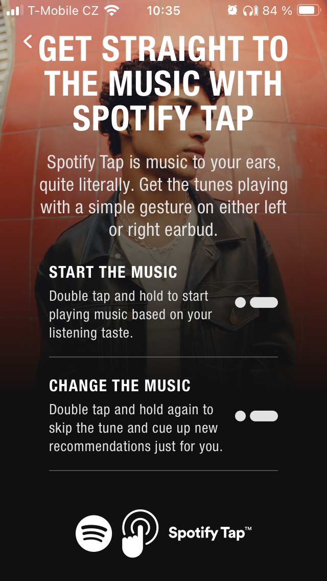 K ovládání slouží vnější plocha, přičemž gesta si lze přizpůsobit v již zmíněné aplikaci. Ve výchozím nastavení jedním krátkým dotykem spustíte či pozastavíte přehrávání, dvojitým poklepáním přeskočíte na další skladbu a zároveň je takto možné přijmout či ukončit hovor, zatímco trojitým se vrátíte k předchozímu tracku. Delším podržením docílíte odmítnutí volání a současně je to způsob, jak přecházet mezi režimem aktivního potlačení hluku a propustnosti. Jako poslední se nabízí kombinace dvojího krátkého a jednoho delšího stisknutí, pod kterou narazíte na funkci Spotify tap.