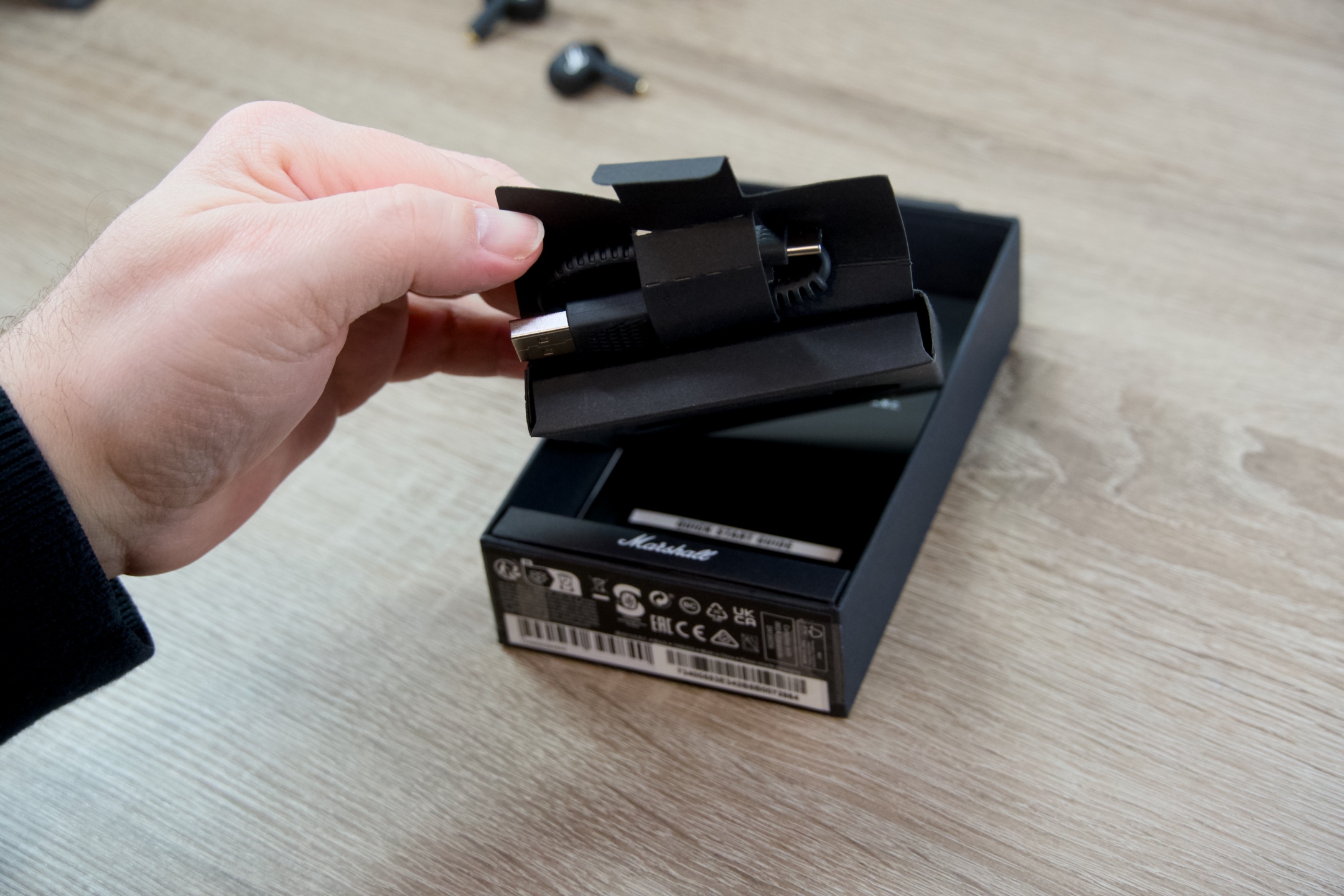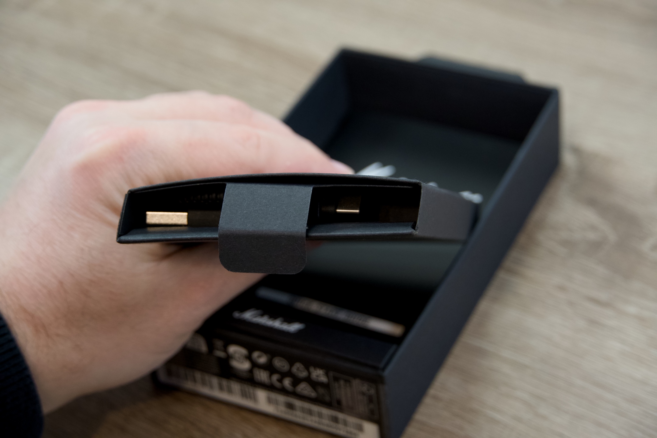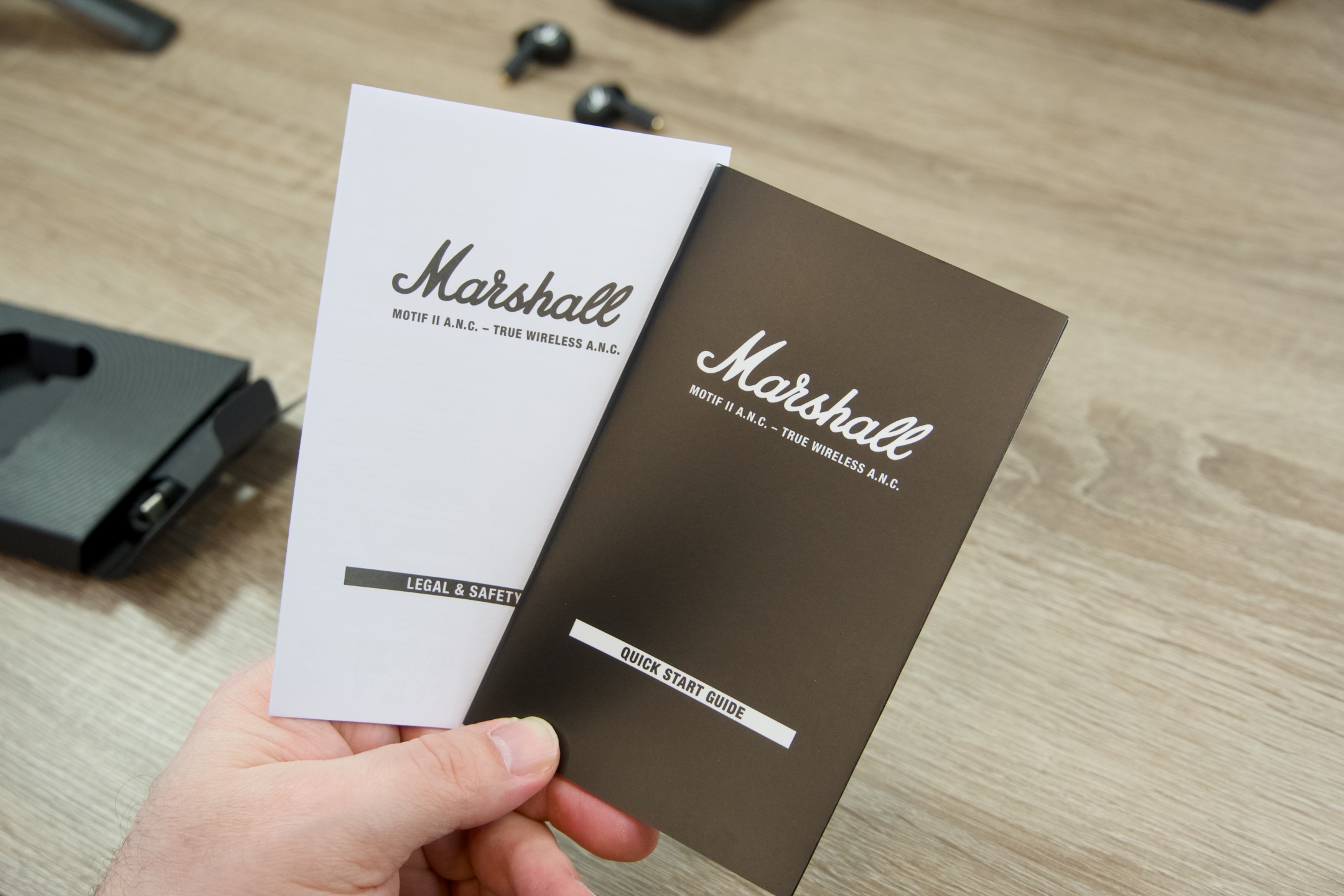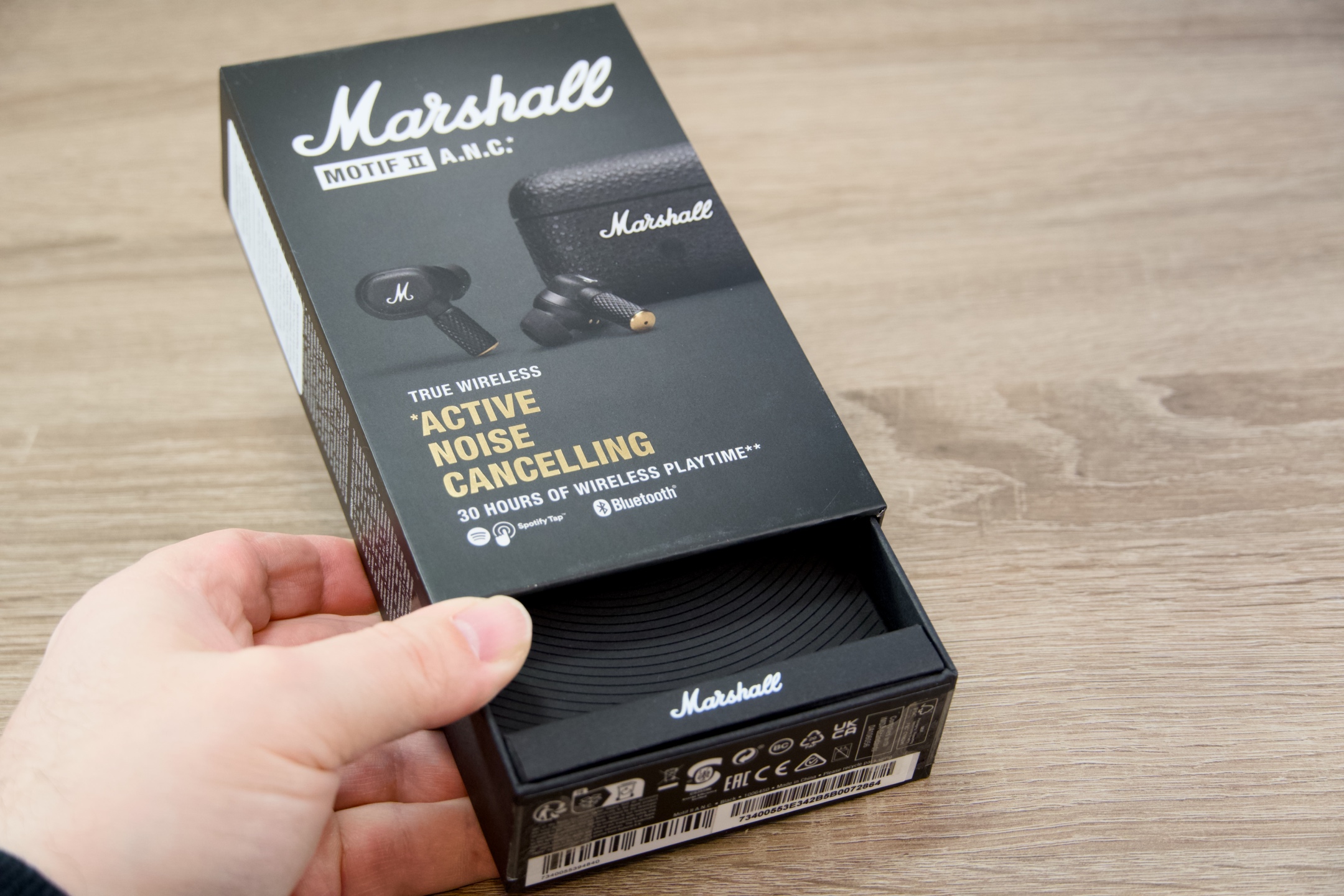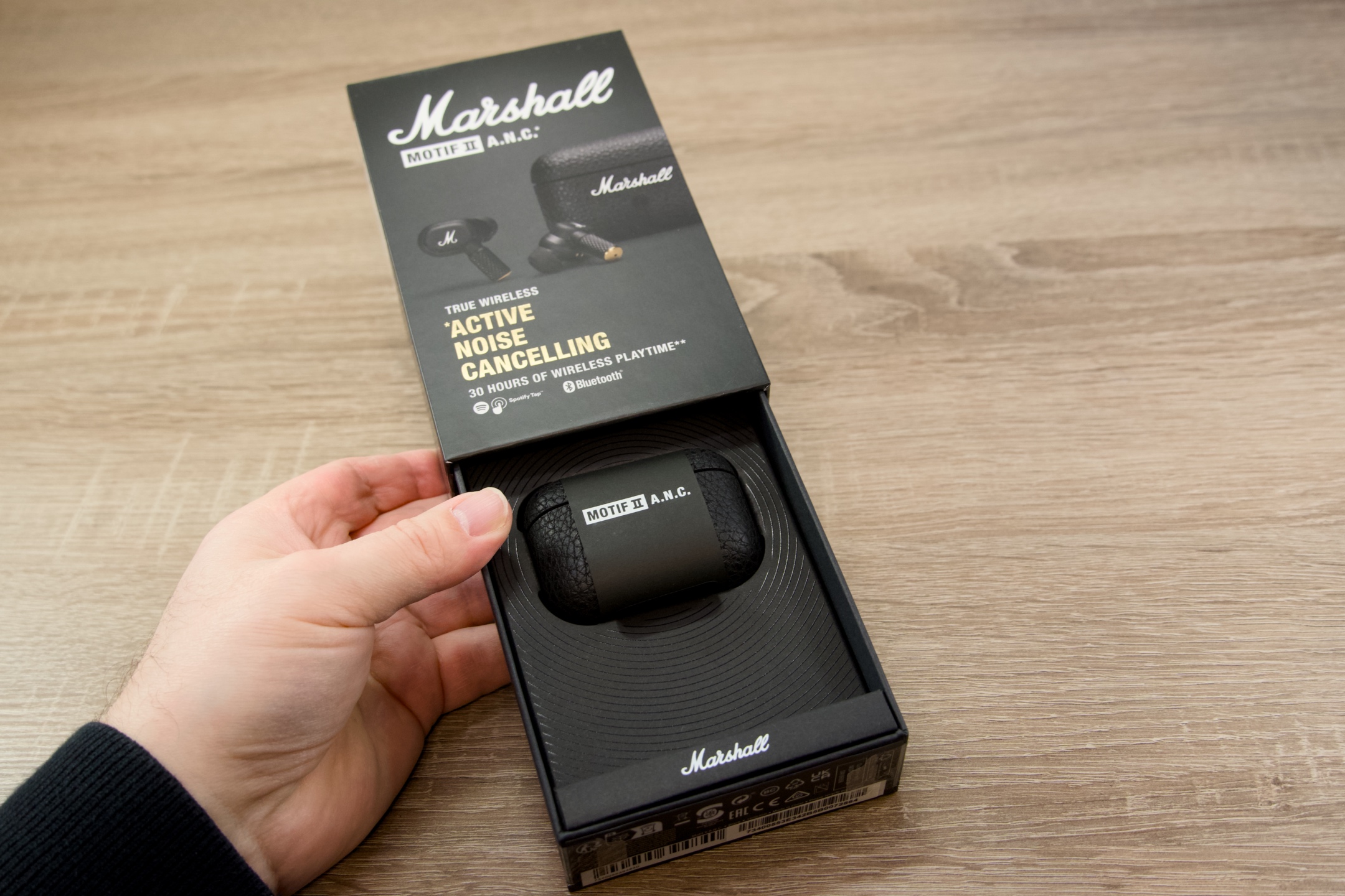 Trocha technických dat jistě neuškodí a dokáže dokreslit představu. Typově uzavřená sluchátka Marshshall MOTIF II A.N.C. využívají k bezdrátovému přenosu standardu Bluetooth 5.3 s podporou SBC kodeků a dosahem 10 m. Frekvenční rozsah udávaný výrobcem je 20 Hz až 20 kHz a podílí se na něm 6mm dynamické měniče s impedancí 16 Ω. Pokud jde o stupeň krytí, mohou se pochlubit úrovní IPX5 a case IPX4, v jejich společnosti tedy majiteli nic nebrání dát si do těla, aniž by byl důvod k jakýmkoli obavám z narušení funkčnosti. Nabíjení je umožněno skrze již zmíněné USB-C i bezdrátově, přičemž za 1,5 hodiny jsou oba komponenty schopny dosáhnout maximální kapacity.