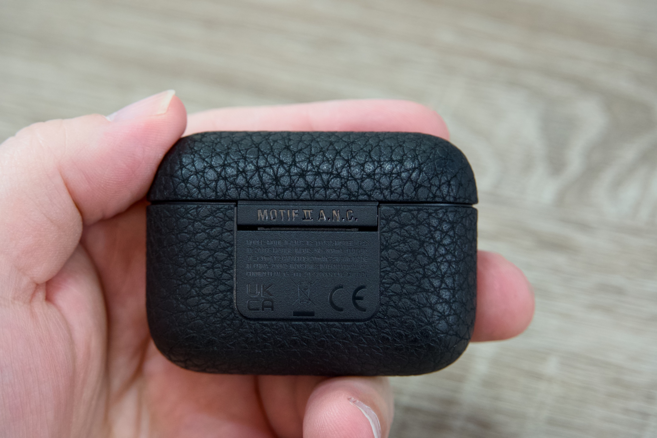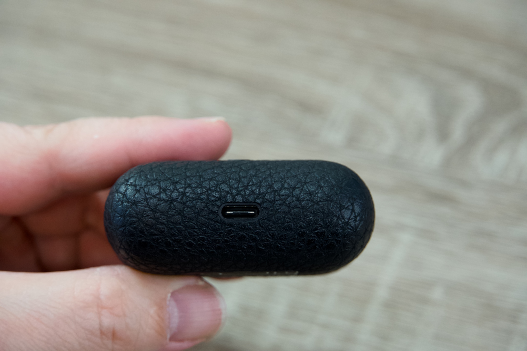 Proporčně se pouzdro příliš neliší od toho pro Apple AirPods, zabere na šířku 6,3 na výšku 4,5 a do hloubky jen 2,5 cm, přičemž samotné váží pouhých 47 g a v tandemu se sluchátky 56 g. Zmíněná textura na jeho povrchu působí velmi efektně i odolně, stejně jako mechanismus pro zavírání a otevírání, takže se při běžném používání určitě nemusíte bát poškrábání nebo jakéhokoli jiného poškození. Na přední straně poutá na černém podkladu pozornost bílé logo, pod kterým je tlačítko s led indikátorem zobrazujícím stav nabití casu a párování, jsou-li špunty uvnitř. Vespod je pak umístěn USB-C port pro dobíjení, jež je dostupné i bezdrátově skrze nabíjecí podložku.
