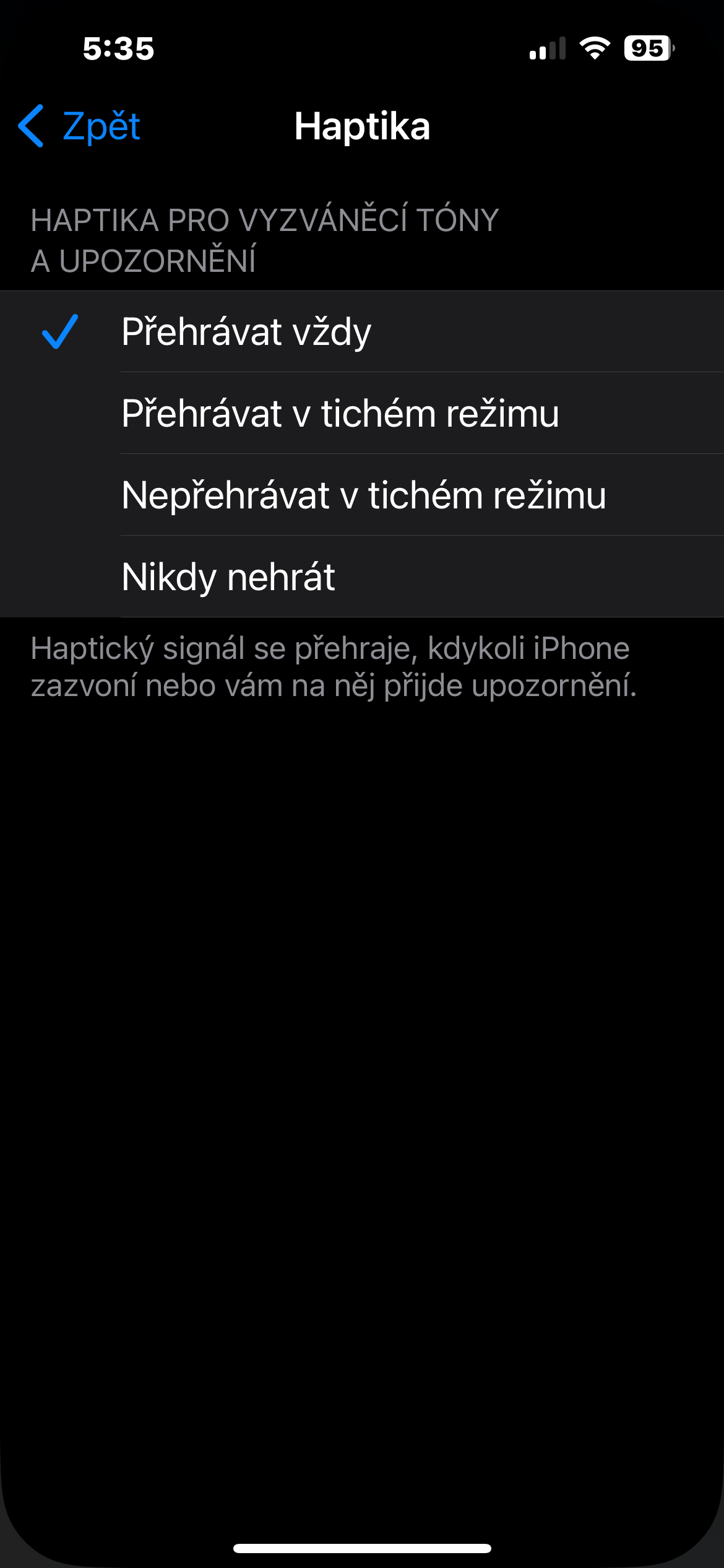 Na iPhonech s novější verzí operačního systému iOS si můžete také ještě lépe přizpůsobit vibrace při vyzvánění. Zamiřte do Nastavení -> Zvuky a haptika a v sekci Vyzvánění a upozornění klepněte na Haptika. Zde můžete nastavit, za jakých podmínek má váš iPhone vibrovat při vyzvánění nebo notifikacích.