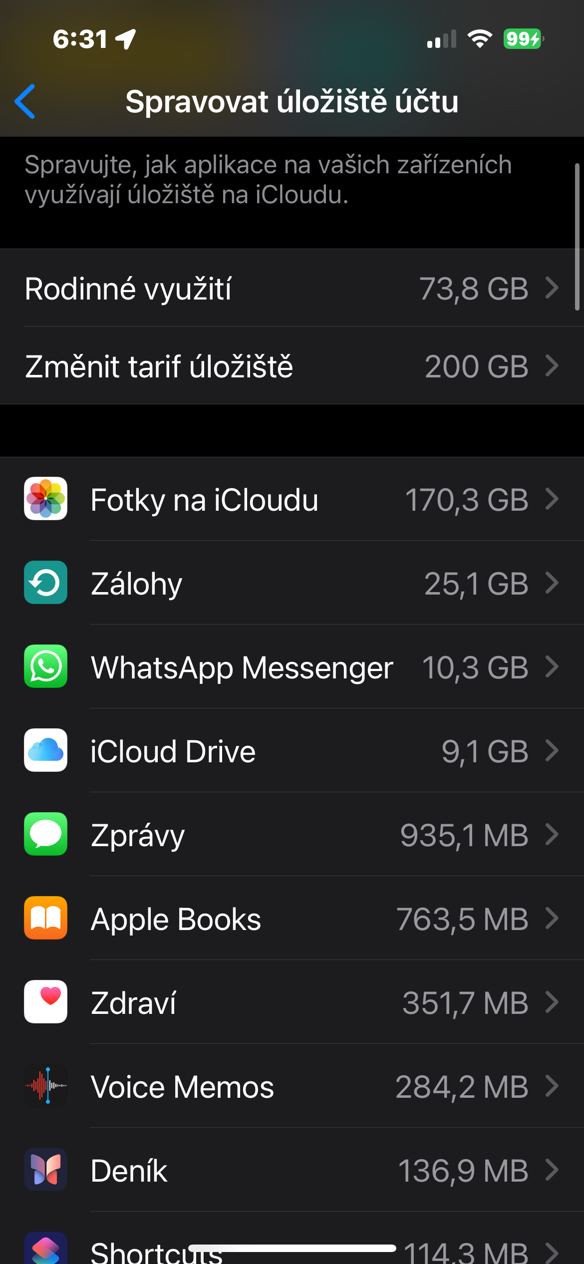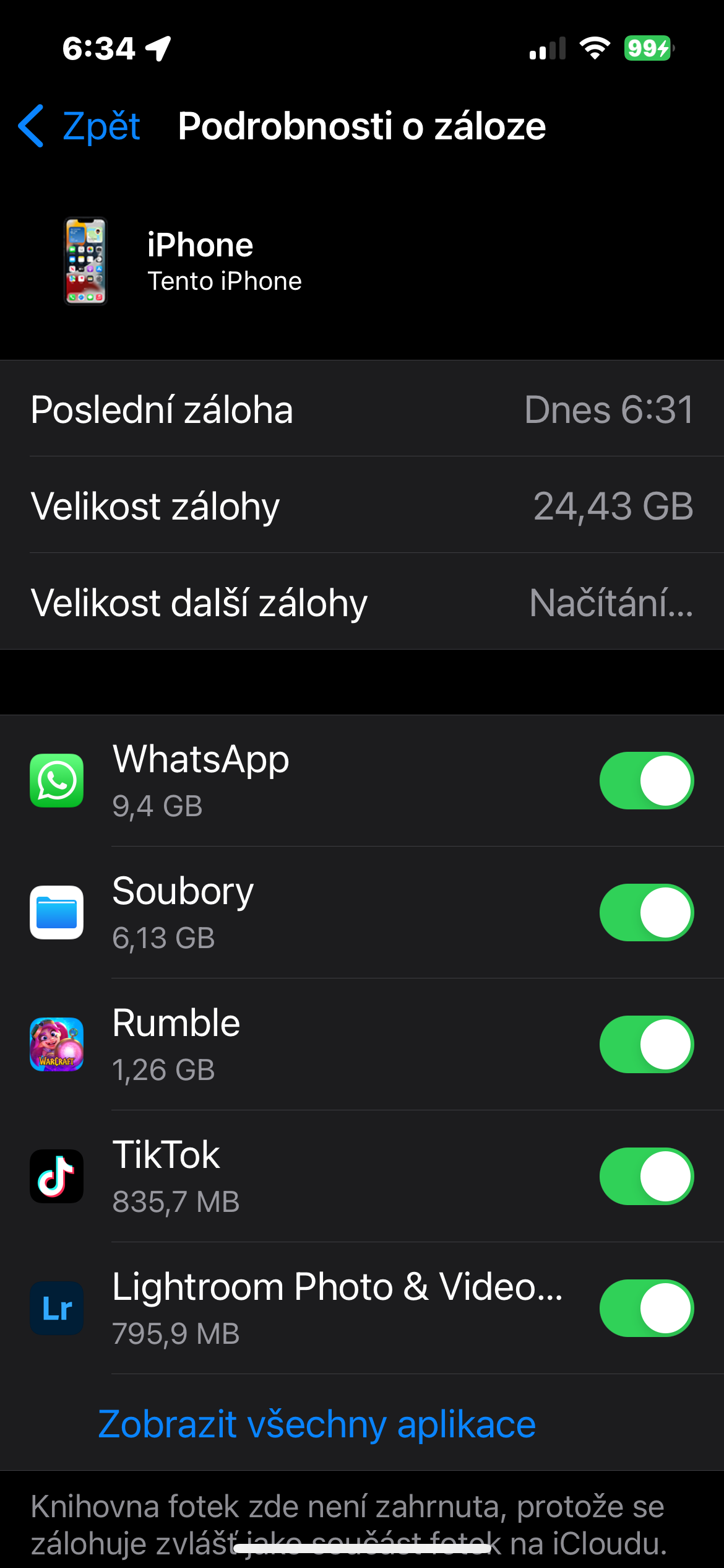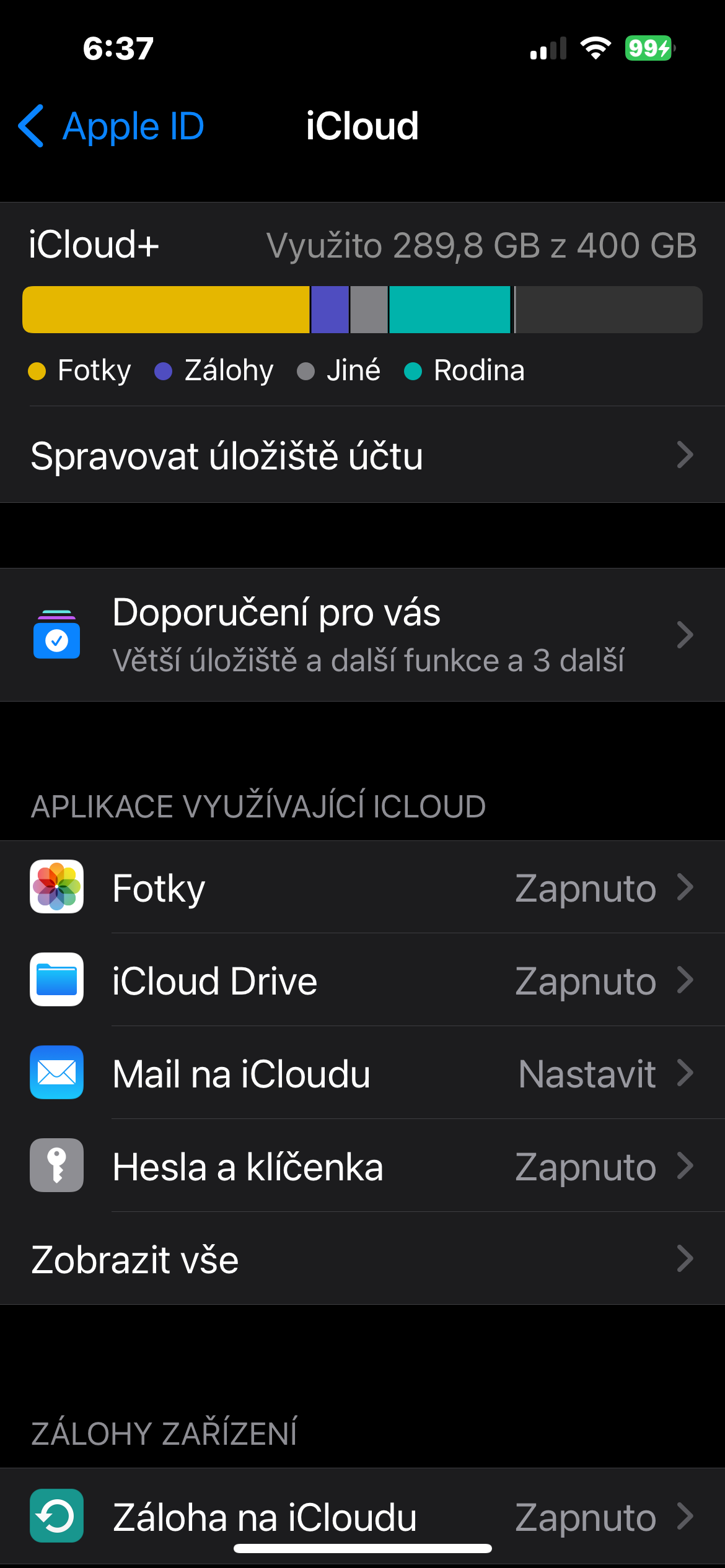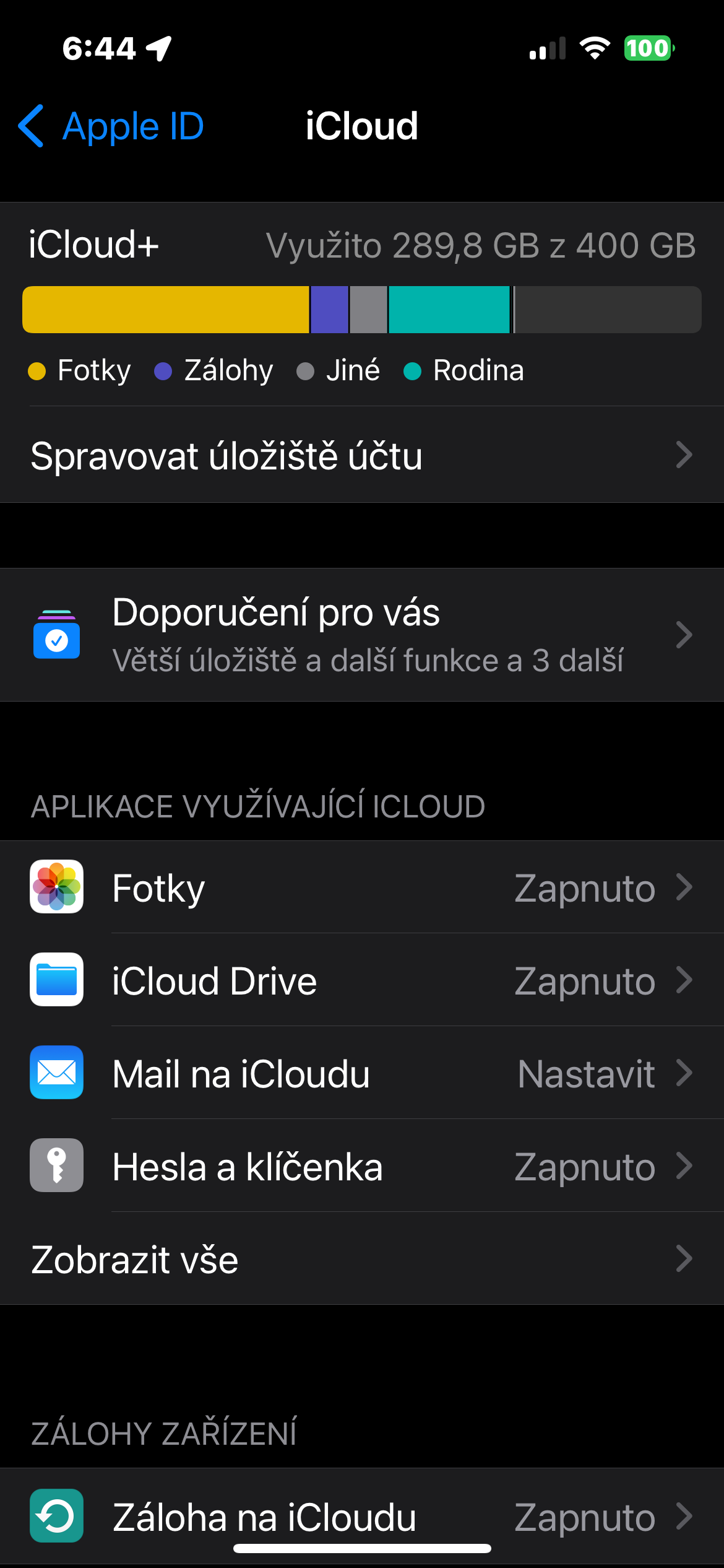 V nastavení iCloudu na vašem iPhonu si můžete vybrat přesné aplikace, které chcete zálohovat do iCloudu. Výhodou tohoto přizpůsobení je, že můžete ušetřit drahocenné místo na cloudovém úložišti, a budete mít zálohované jen ty aplikace, které skutečně potřebujete. Na iPhonu spusťte Nastavení -> Panel s vaším jménem -> iCloud. Zvolte Spravovat úložiště účtu -> Zálohy, a klepněte na panel s poslední zálohou. Pod informacemi o velikosti záloh můžete následně určit, které aplikace chcete zahrnout do zálohování.