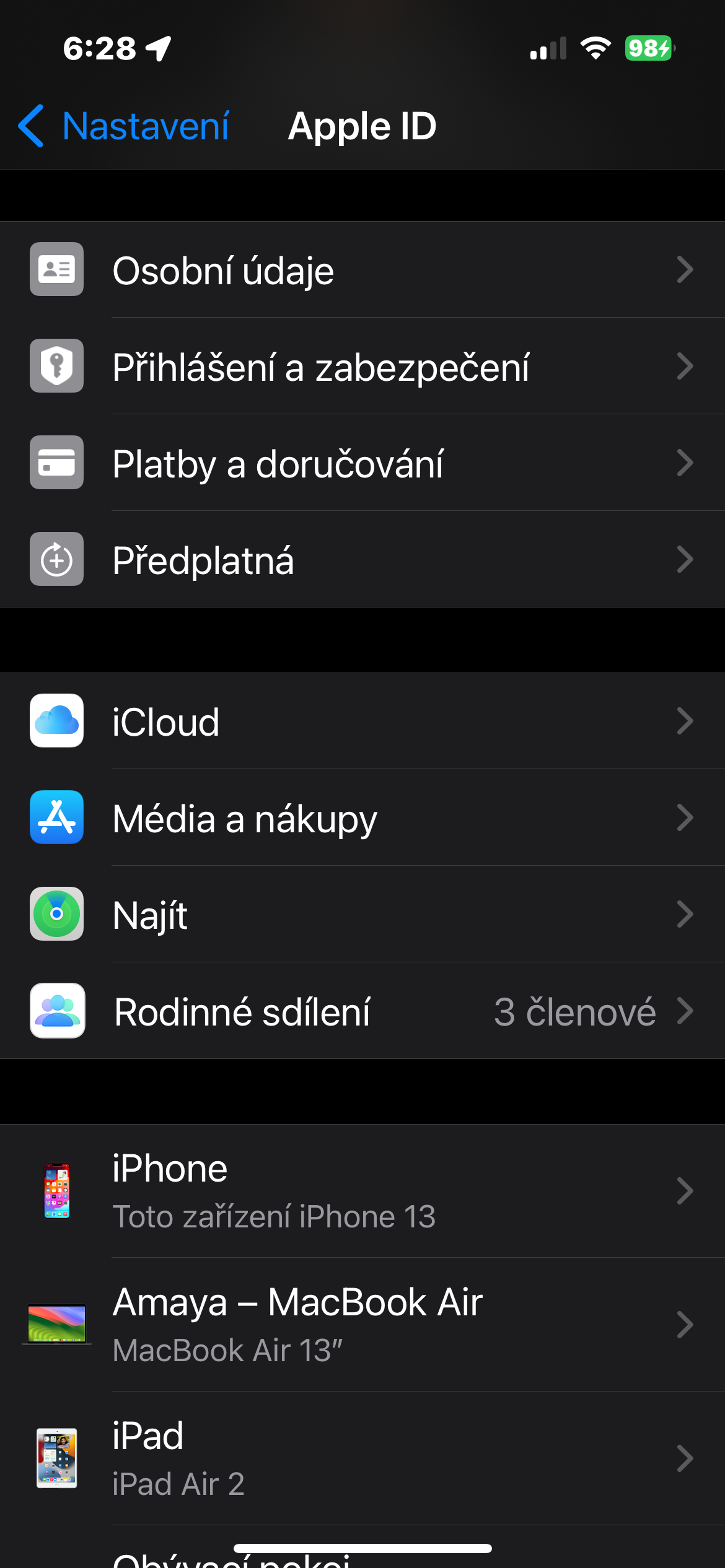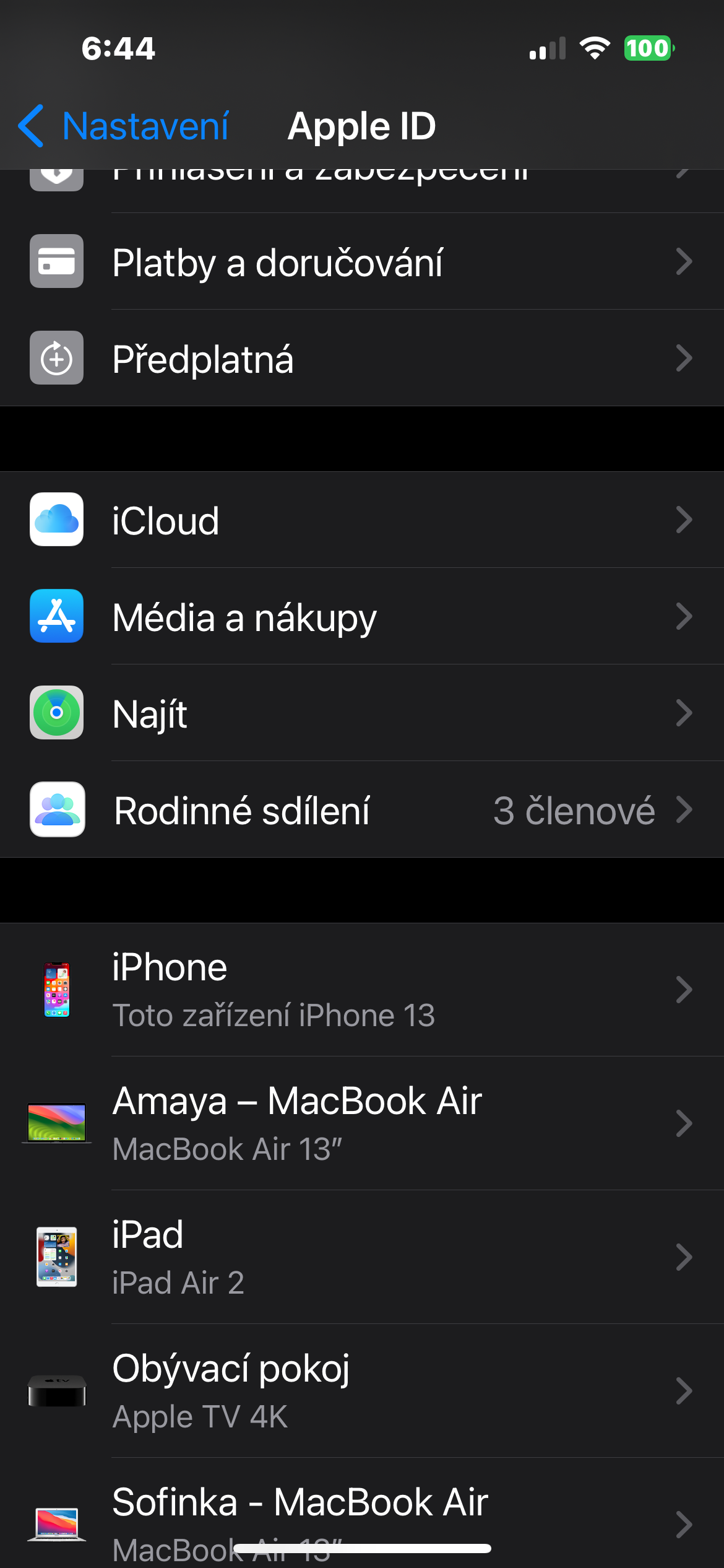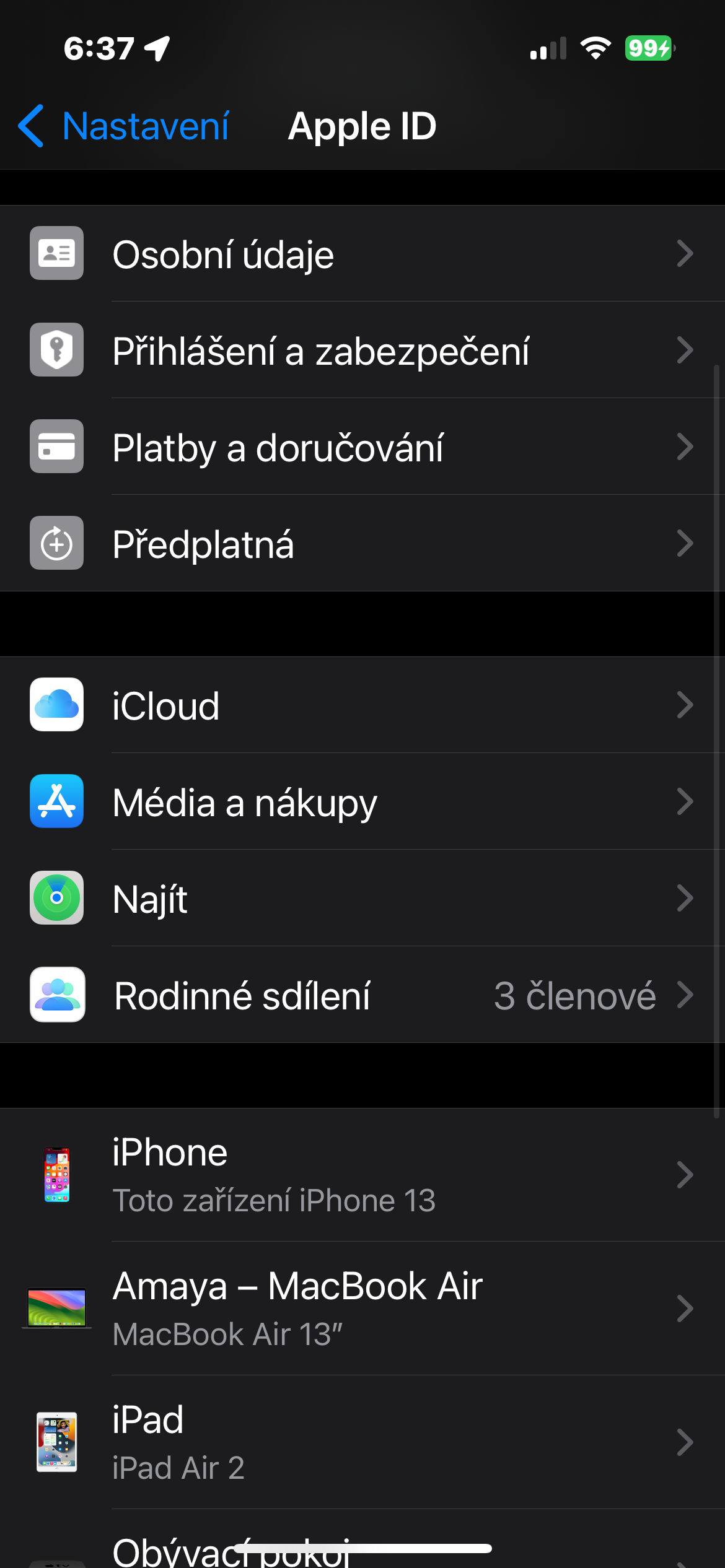 Rodinné sdílení umožňuje kromě placených aplikací, hudby a filmů také sdílet úložiště iCloudu s členy rodiny, kteří používají zařízení Apple. To znamená, že vaše rodina nemusí platit za předplatné iCloudu více než jednou. Kromě sdílení nákupů můžete také sdílet polohu, vzájemně vyhledávat ztracená zařízení, nastavovat omezení času u obrazovky a komunikační limity na zařízeních dětí na dálku. Pro aktivaci Rodinného sdílení spusťte Nastavení -> Panel s vaším jménem -> Rodinné sdílení, a postupujte podle pokynů na displeji.