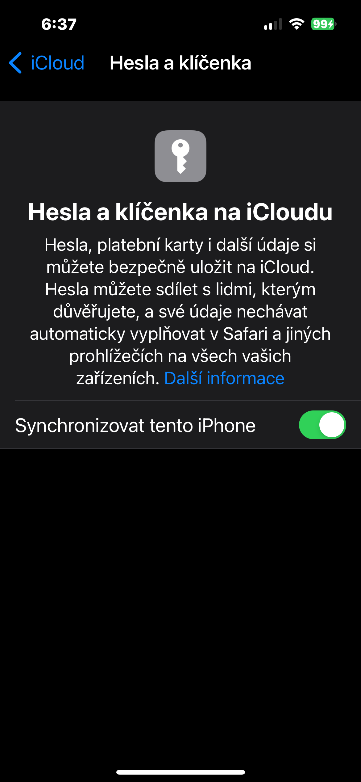 Na App Storu je k dispozici celá řada aplikací třetích stran pro správu a synchronizaci hesel. K tomuto účelu ale můžete použít i nativní bezplatnou Klíčenku na iCloudu. Zapnout ji můžete v Nastavení -> Panel s vaším jménem -> iCloud -> Hesla a klíčenka, kde aktivujete položku Synchronizovat tento iPhone.