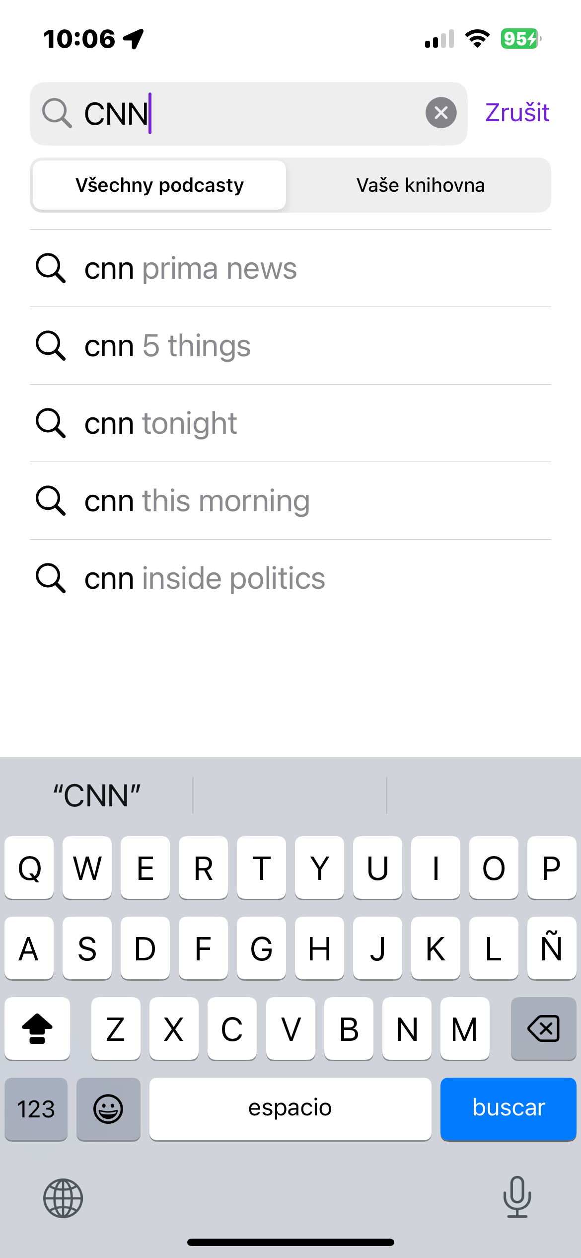 - Zadejte název požadovaného podcastu a klepněte na Hledat na klávesnici.
