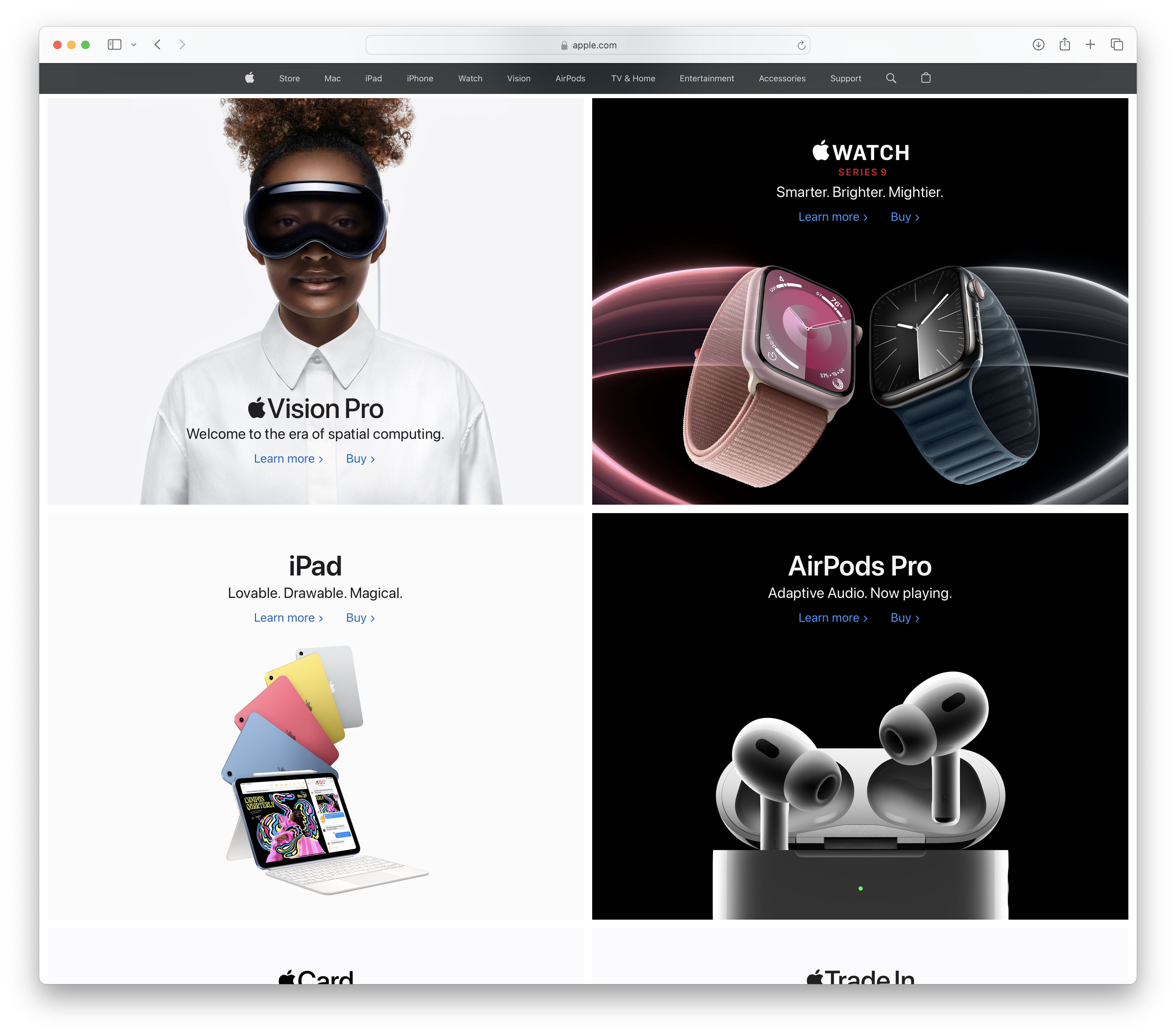 To, co se na první pohled může zdát zcela bezvýznamné je však celkem zarážející. Vision Pro je nejnovější produkt, který Apple nabízí. Je Applem považován za zcela novou éru a za novou kategorii produktů a přesto stačily pouhé tři týdny na to, aby jej z nejvyšší pozice na homepage Apple.com sesadil půl roku starý iPhone a téměř stejně starý MacBook Pro. Je otázka, proč se Apple rozhodl nedávat Vision Pro již tolik pozornosti jako doposud, ovšem ať už je odpověď jakákoli, je to přinejmenším zvláštní.