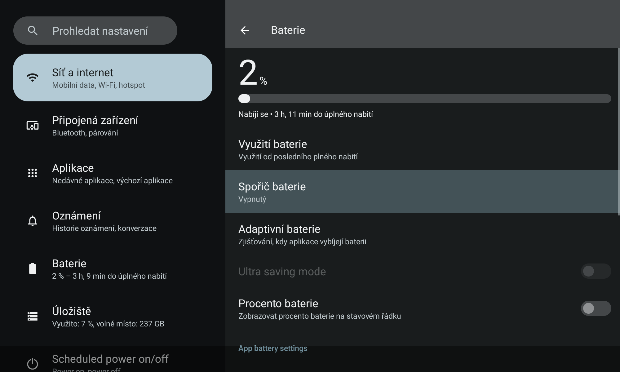 Pozitivně hodnotím také výdrž baterie, neboť bylo kupodivu docela obtížné docílit ve snaze dobrat se později k reálnému chování při nabíjení úplného vybití, přestože jsem přehrával videa na YouTube, poslouchal Spotify a měl spuštěno množství aplikací, k nimž jsem průběžně přistupoval. Z nulového stavu dosáhl tablet s přiloženou 10W nabíječkou plné kapacity za necelé 3 hodiny, když jsem jej zahájil v 11:00 a v 13:56 bylo nabíjení kompletní.