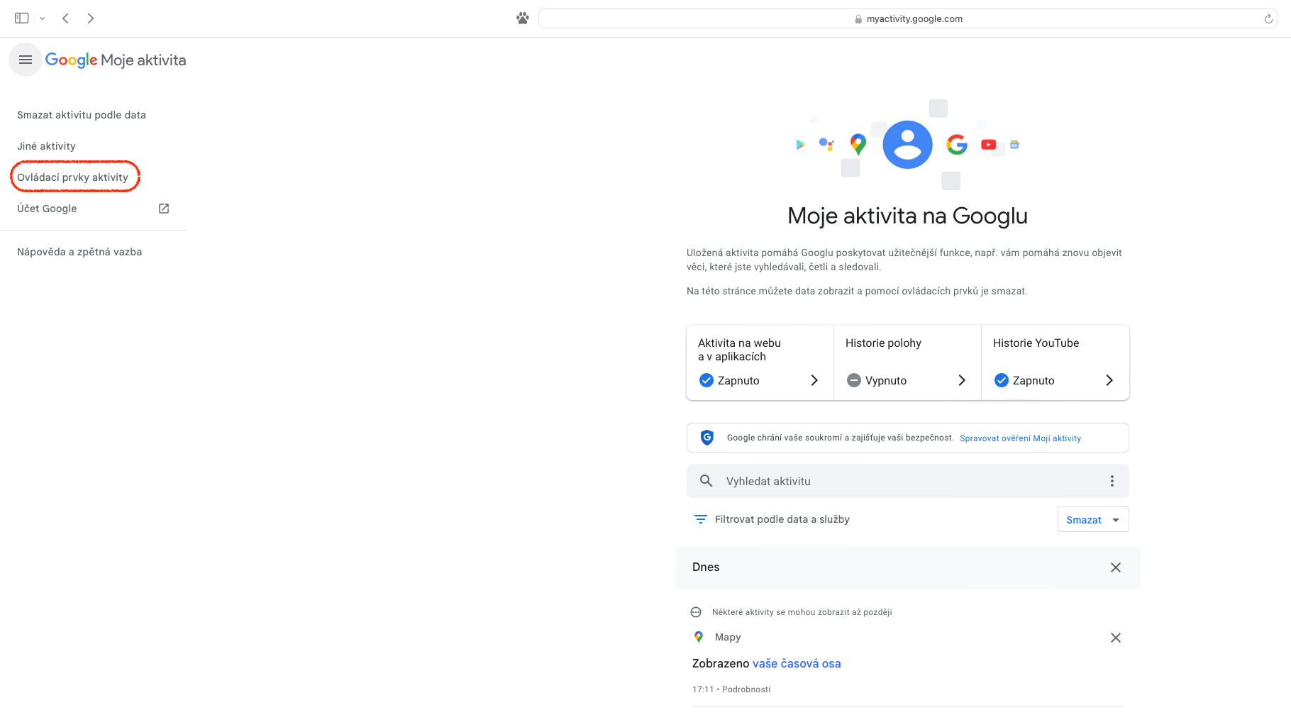Google toho o nás sice ví hodně, ale spokojený zákazník je stále hodnota, která pro firmu něco znamená, pročež vypnutí webové aktivity je poměrně jednoduchý proces. Na stránce „Moje aktivita na Googlu“ stačí rozkliknout menu skrývající se pod ikonou se třemi vodorovnými čárkami vlevo nahoře a zde použít odkaz „Ovládací prvky aktivity“. Ten uživatele směruje k vysvětlení, která data jsou ukládána.