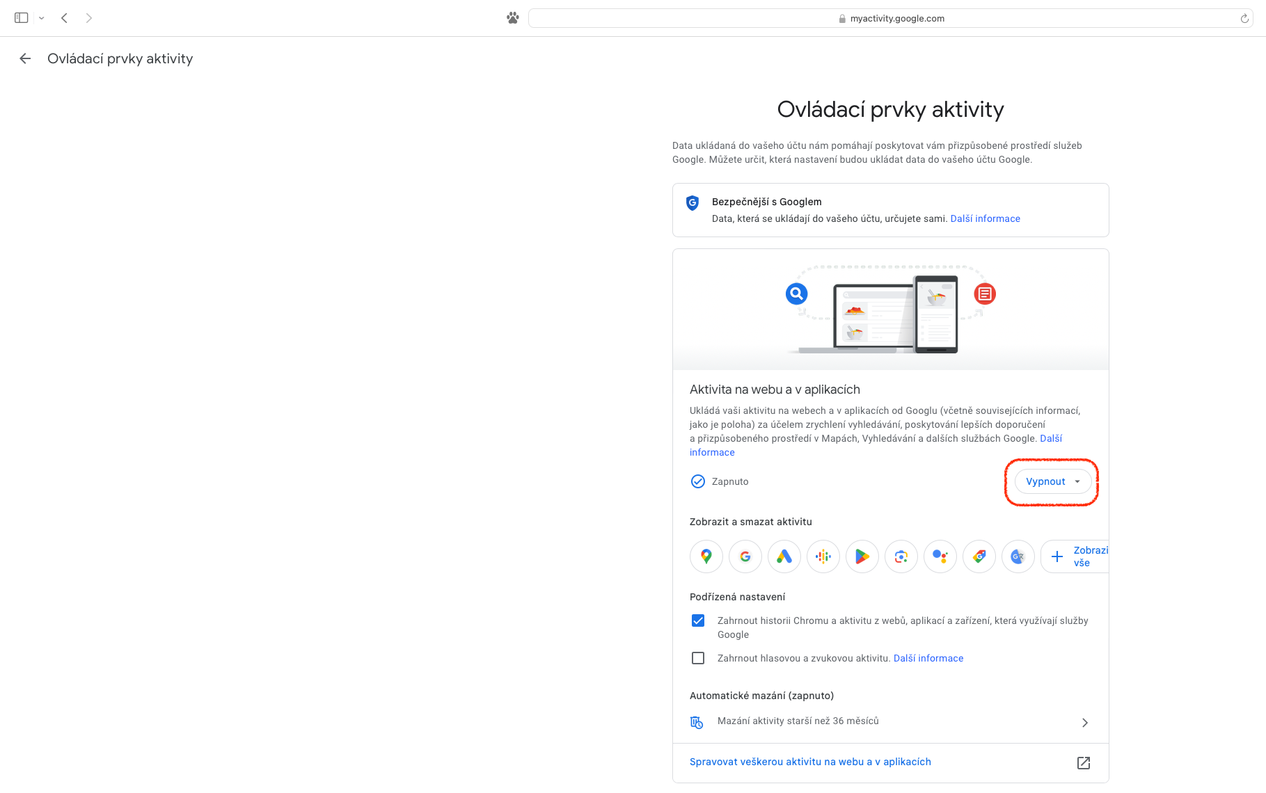 Jak vypnout monitorování webové aktivity?