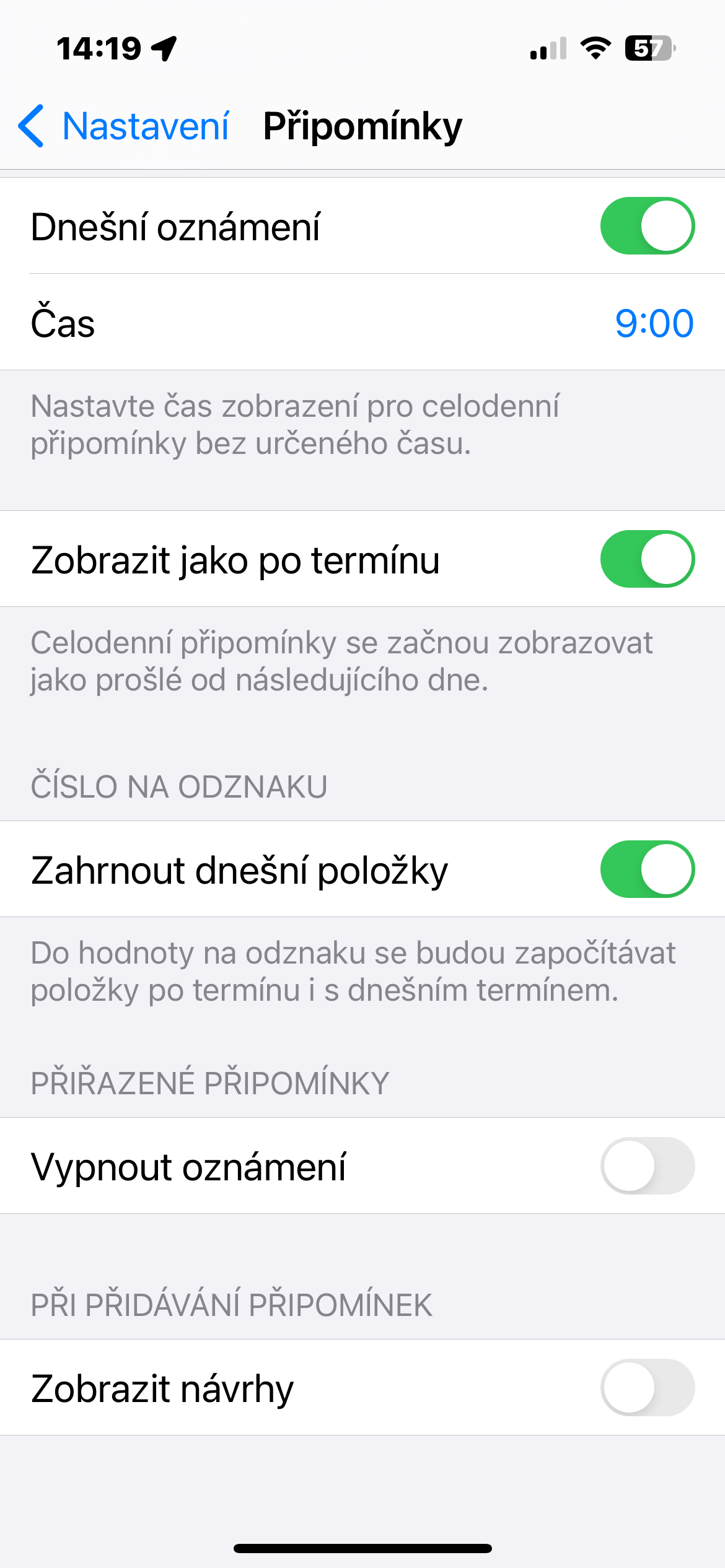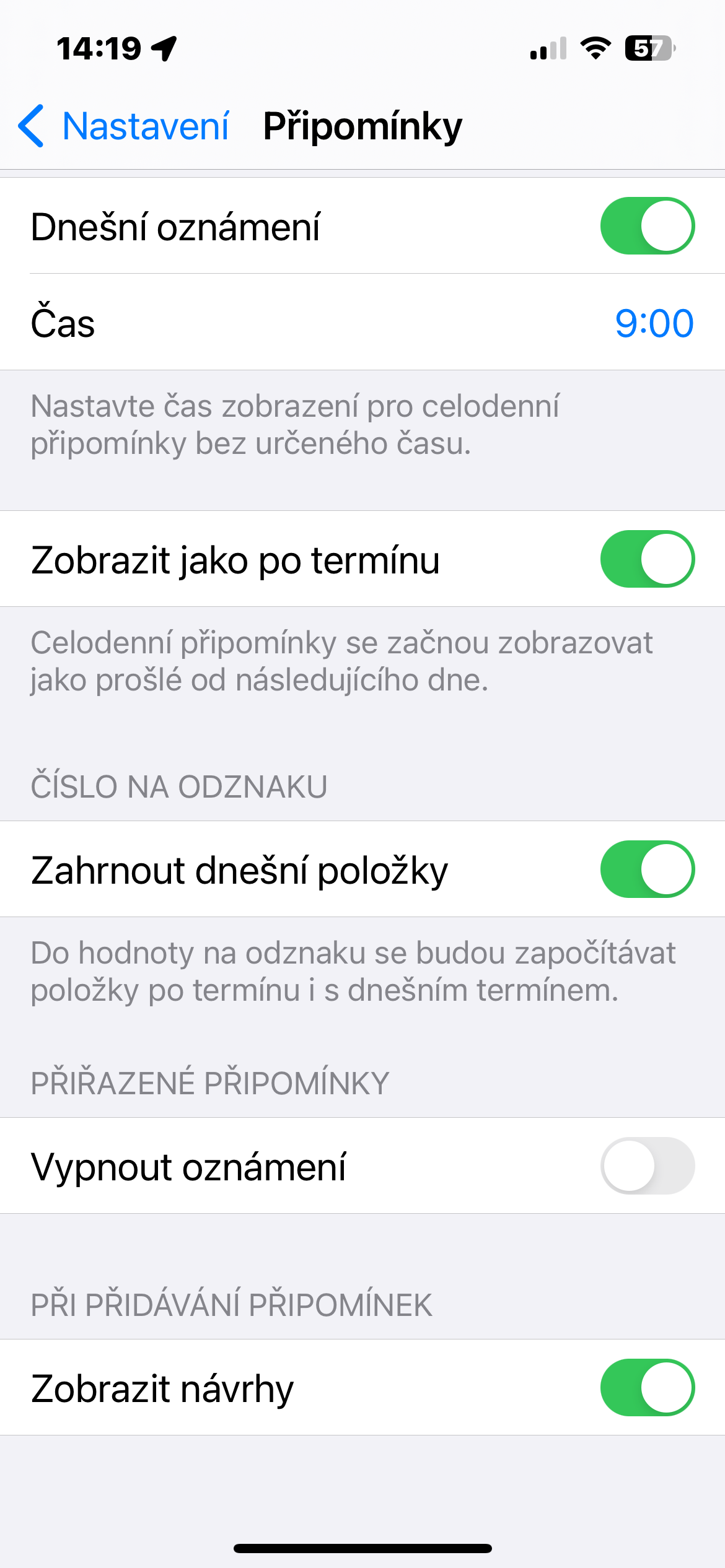 Jak na iPhonu deaktivovat návrhy připomínek