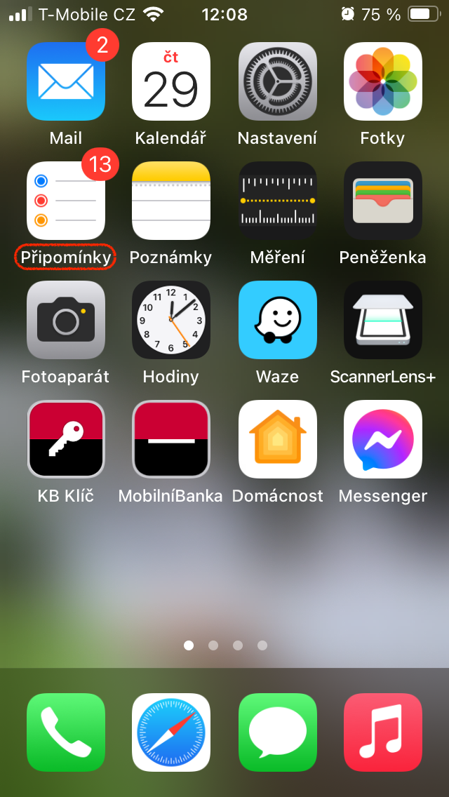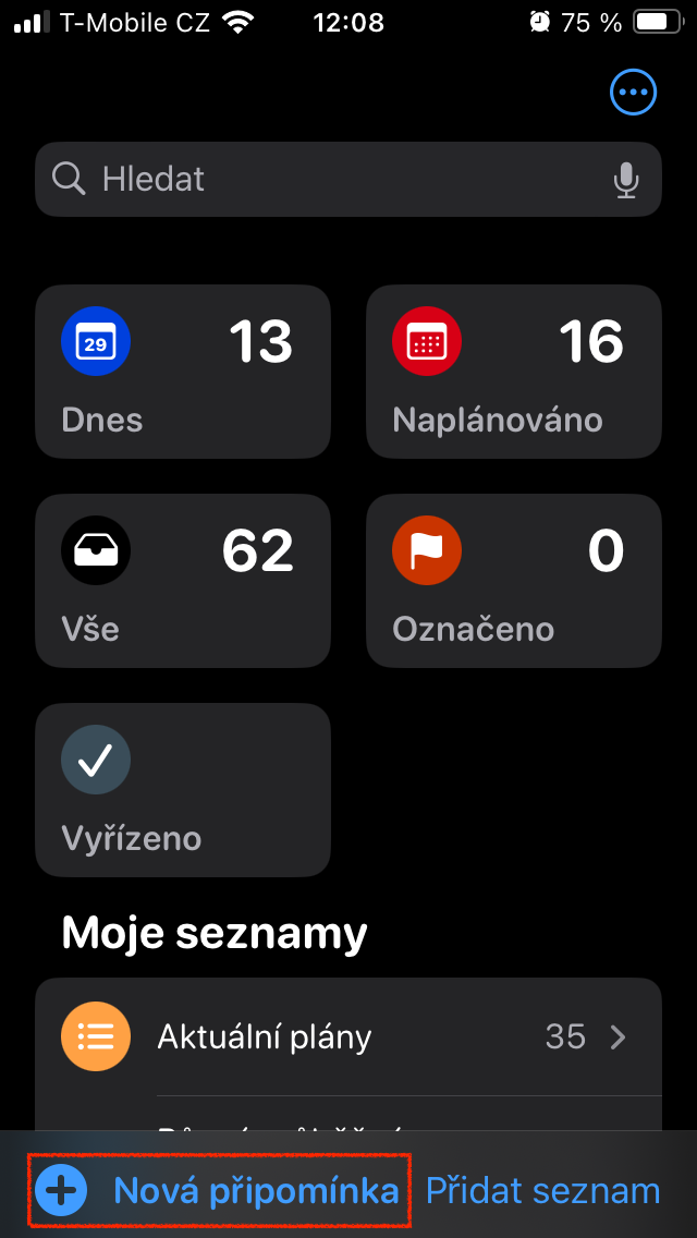 Připomínky reprezentované typickou ikonou s modrou, červenou a oranžovou tečkou a třemi linkami na bílém pozadí najdete na ploše svého iPhonu nebo iPadu, popřípadě přejetím po volném místě směrem dolů a zadáním slova „Připomínky“ do vyhledávacího pole. Je-li aplikace vašim každodenním pomocníkem, můžete si přístup k ní (nebo přímo konkrétnímu seznamu) usnadnit přidáním widgetu.
