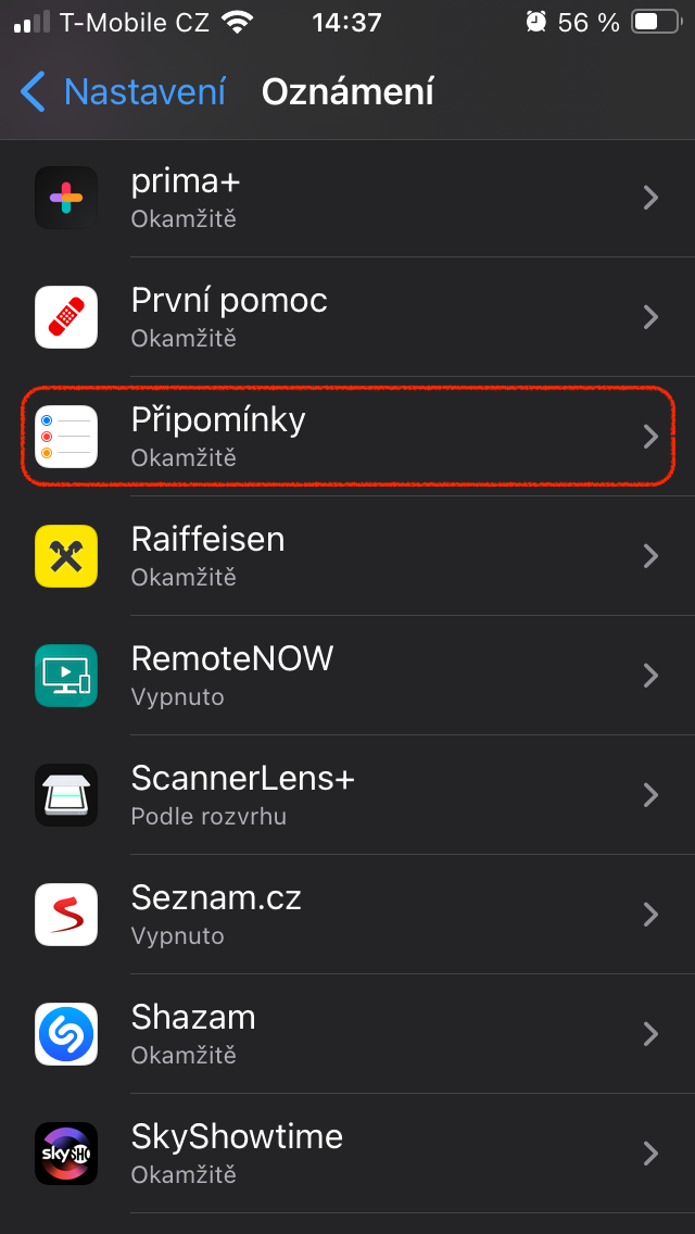 Co dělat, když se na iPhonu nedaří nastavit Připomínky?