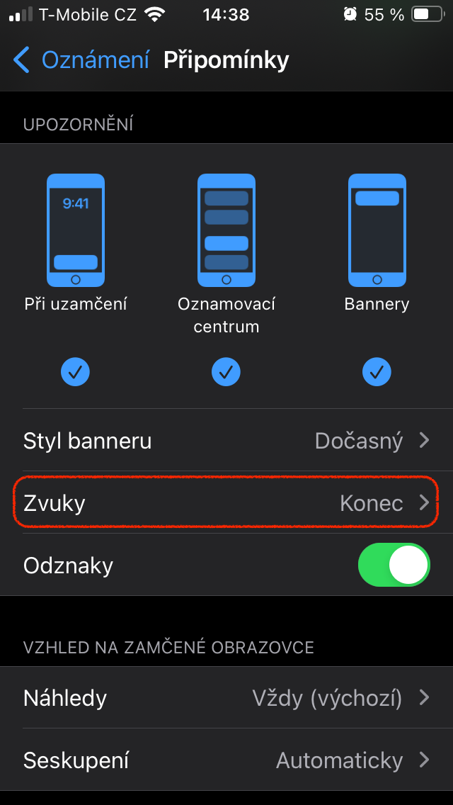 Když aplikace Připomínky odešle oznámení, může na základě vašich preferencí vydat také zvuk. Ovlivnit to lze v „Nastavení“, kde se zaměříte na „Oznámení“, dále „Připomínky“, poté přejdete do oddílu „Upozornění“ a klepnete na „Zvuky“. Další výběr už závisí jen na vás, ideálně by vzorek neměl být dlouhý, otravný, ale ani příliš nevýrazný, což by mohlo vést k jeho přeslechnutí.