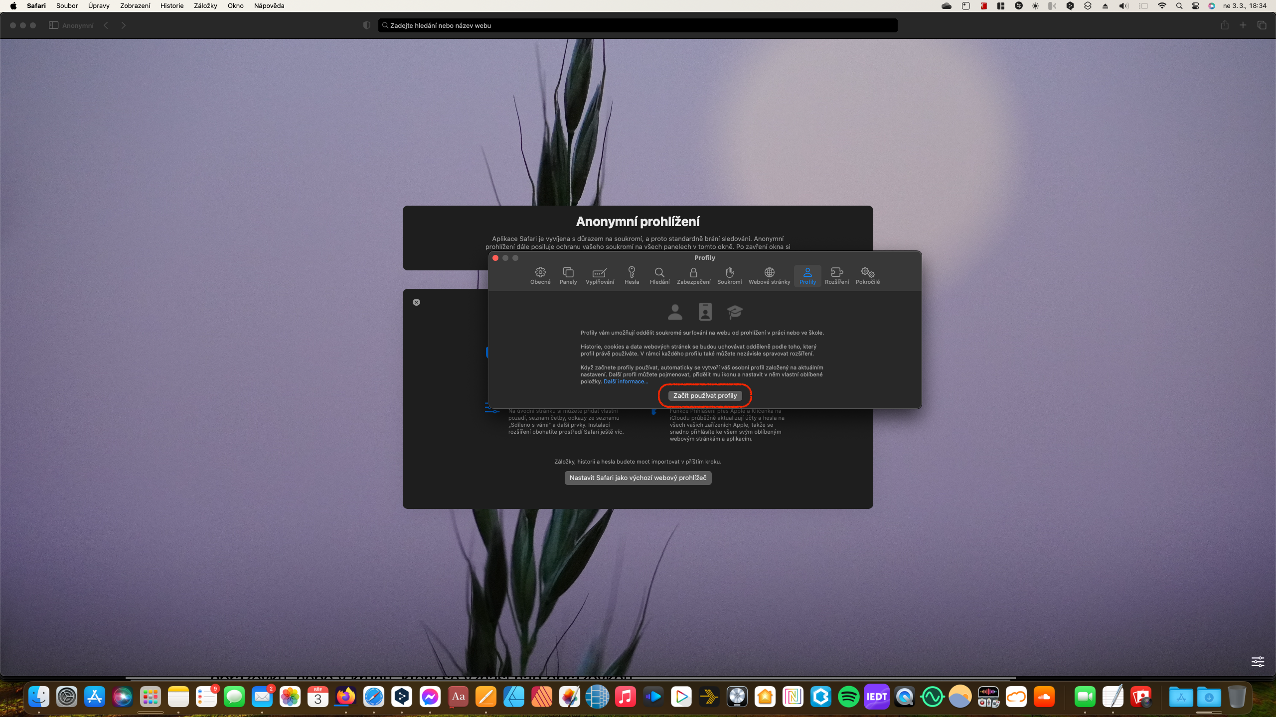 Profily usnadňují používání jednoho Macu při pracovních i osobních činnostech, přičemž každý může mít vlastní sadu záložek, oblíbených položek i rozšíření. Nejste omezeni ani na jeden pracovní a jeden osobní profil, takže si jich můžete klidně vytvořit tolik, kolik potřebujete k jakémukoli účelu.