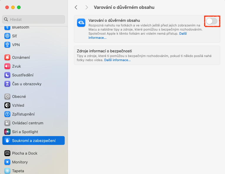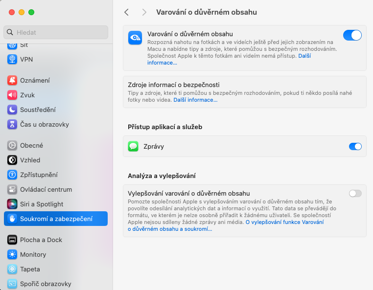 Ta dokáže upozornit na citlivý obsah a poskytnout tak další záštitu tím, že varuje před zobrazením potenciálně nevhodných obrázků nebo videí, které by k příjemci mohly doputovat prostřednictvím AirDrop, přes Zprávy nebo skrze FaceTime, přičemž kromě filtrování dovoluje také zablokovat odesílatele.
