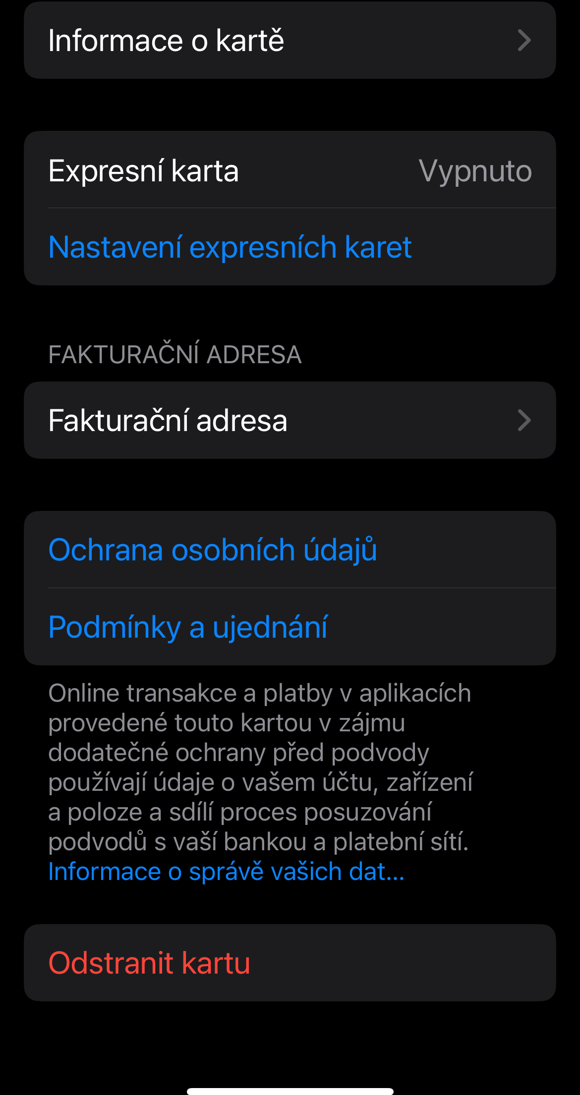 Pokud chcete odstranit kartu z Peněženky na iPhonu, postupujte podle následujícího návodu.