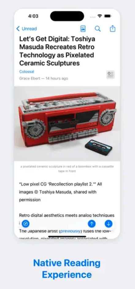 Elytra je chytrá RSS čtečka pro iPhone, která se zaměřuje na bezpečnost a soukromí. Nabízí elegantní a intuitivní rozhraní pro snadné sledování vašich oblíbených webů a blogů. Elytra je chytrá RSS čtečka pro iPhone, která se zaměřuje na bezpečnost a soukromí. Nabízí elegantní a intuitivní rozhraní pro snadné sledování vašich oblíbených webů a blogů. Můžete si upravit vzhled a chování aplikace Elytra podle svých představ. Nastavte si písmo, řádkování, velikost textu a další parametry pro vytvoření perfektního prostředí pro čtení.